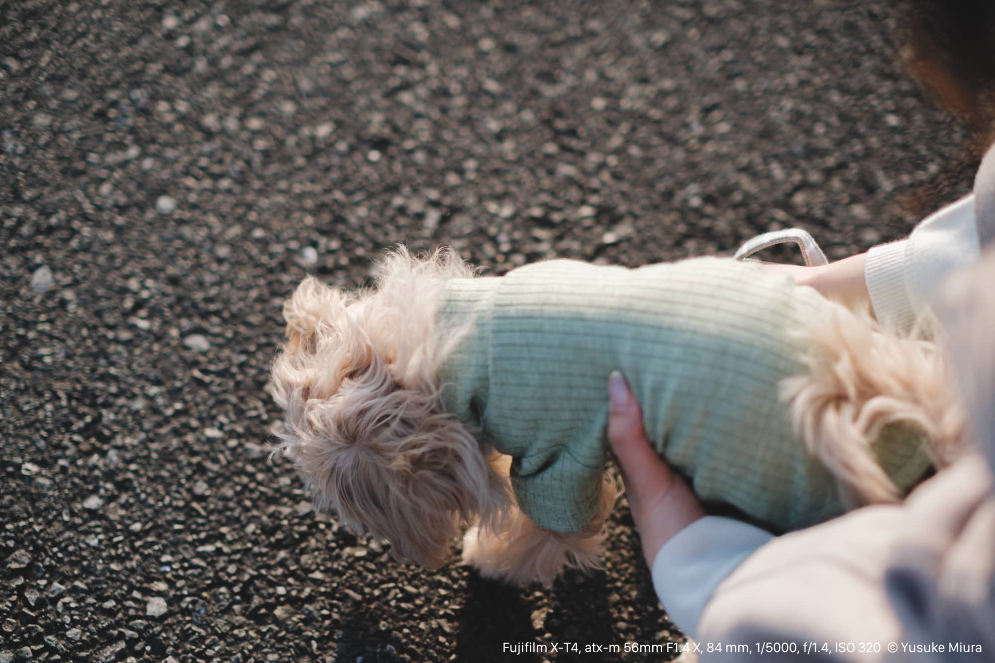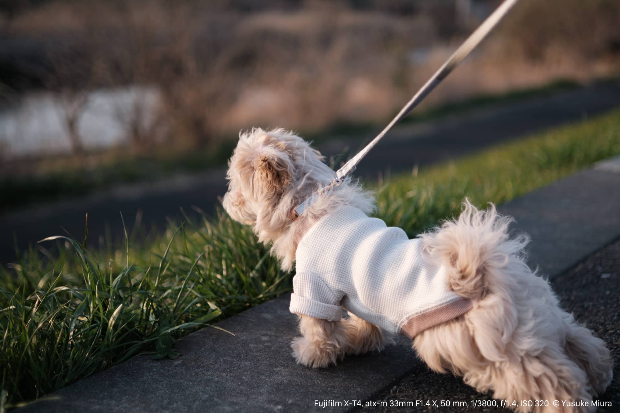 1月の頭にお迎えしたから、寒空の下で何度も連れて行きました。遠くに行く必要はなく近所を歩き回るだけでいいのです。それでも、見たことのない景色を見せたり、お花や葉っぱの匂いを嗅がせたり、道路を走る車の音を聞かせたりすることができます。こうして無理のない範囲でいろんなものに慣れさせます。
