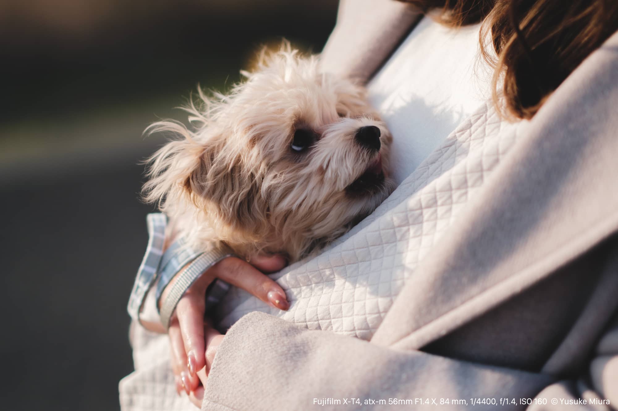 ちなみに、抱っこ用にはドッグウェアブランド「monchéri(モンシェリ)」のグラフチェックドッグスリングを買いました。もちろん、どこかに行ってしまわないように首輪とリードは絶対に付けておきましょう。抱っこだからといっても油断は禁物です。