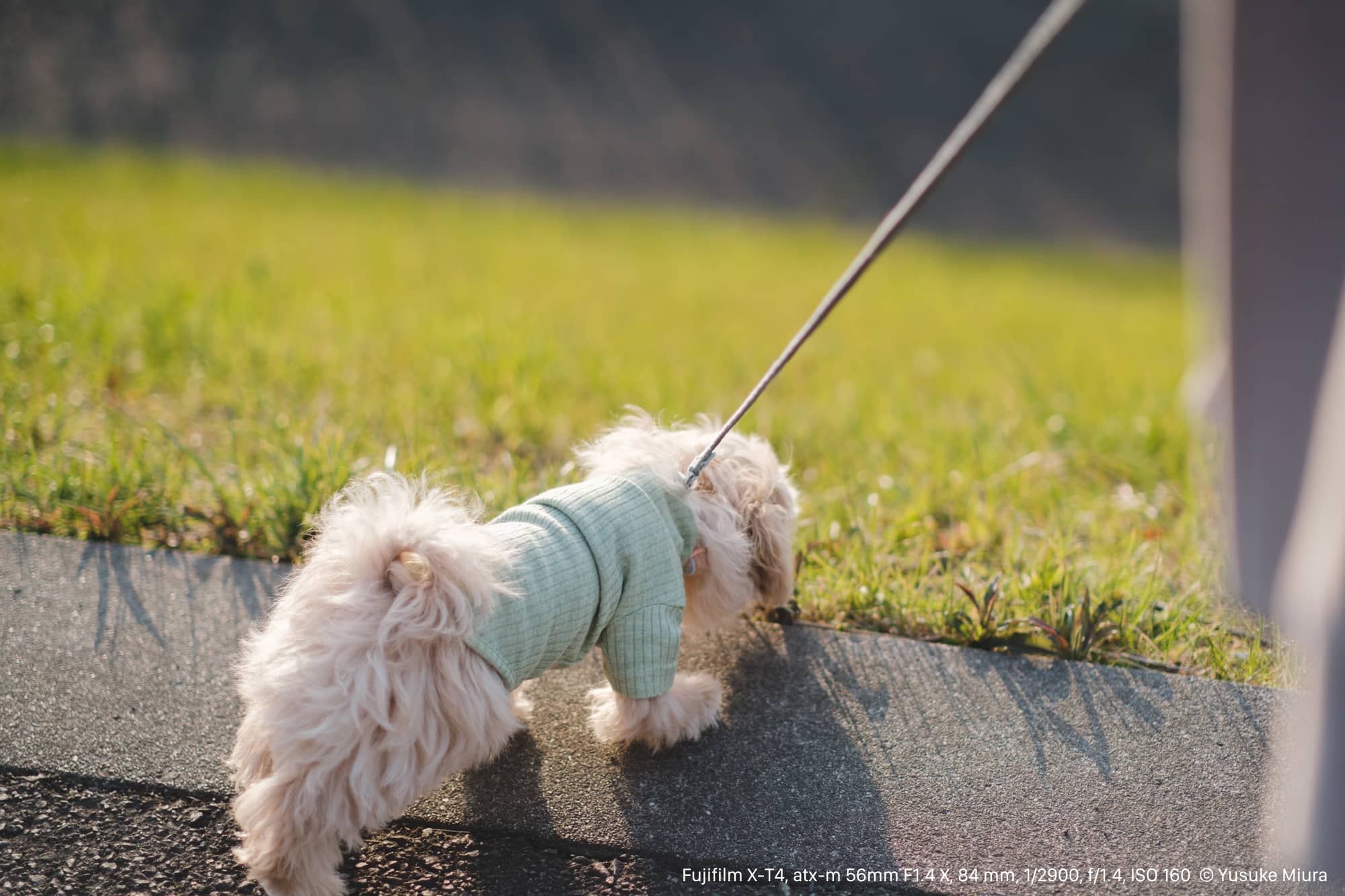 お散歩すると、自転車が行き交っていたり、おしゃべりに夢中な高校生とすれ違ったりと、子犬にとっては結構刺激が強めの環境で。最初は怯えて歩いてくれないかなと思っていたのですが、案外そうでもなく、スムーズにお散歩してくれました。