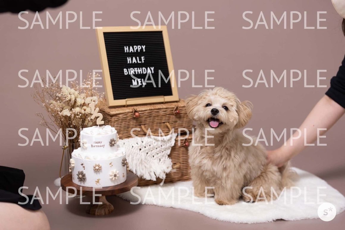 ちなみに、ハーフバースデーの撮影は最初の流れには入っていなかったのですが、私たちからお願いして撮っていただきました。「もちろんいいですよ!」と撮影環境を整えていただいたり、新作のケーキを出していただいたり、ホスピタリティが溢れるスタジオだなーと思いました。