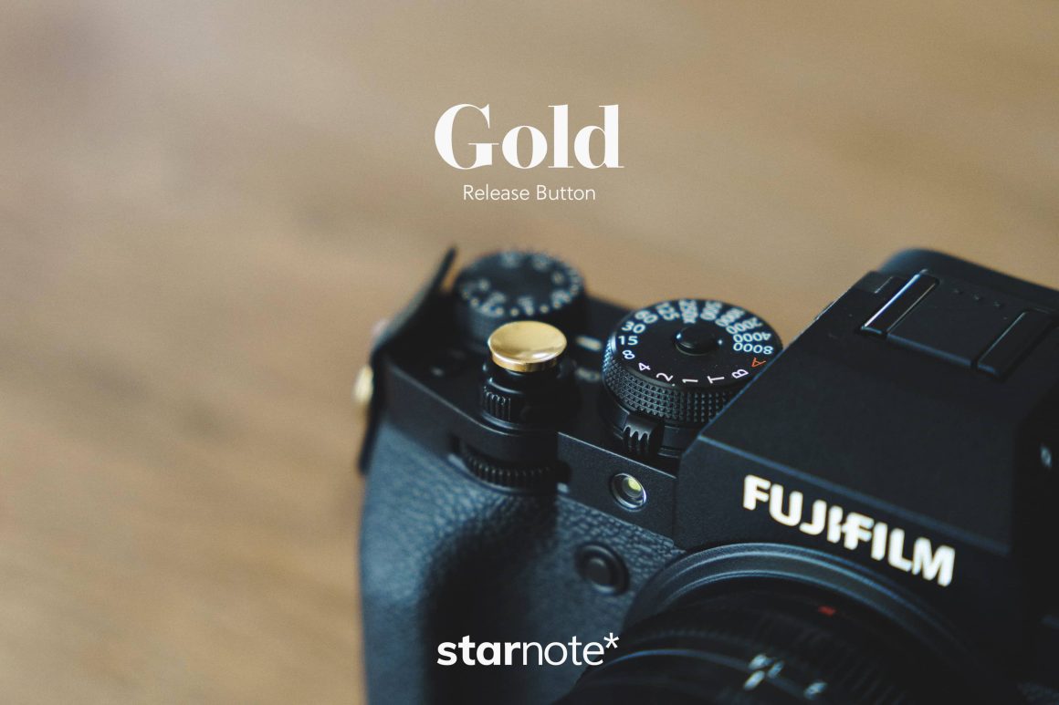 FUJIFILM X-T4やX100VIと一緒に使っている金色のシャッターボタン。FUJIFILMのカメラにマッチして、ちょっとしたアクセントにもなります。