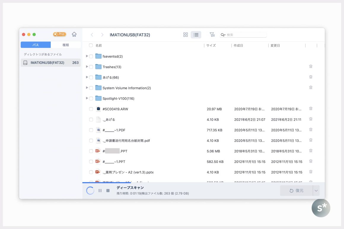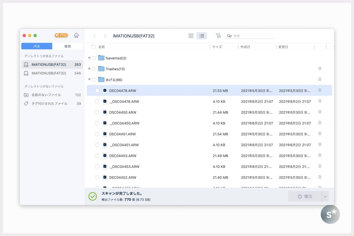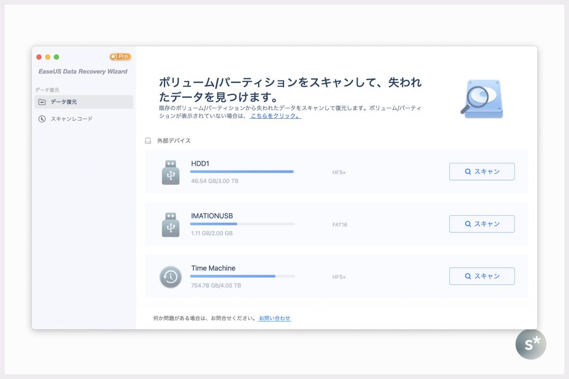 内蔵ドライブだけでなく、USBメモリ、外付けハードディスク、SDカードのデータも復元可能。Macで認識できるドライブなら何でもOKということですね。