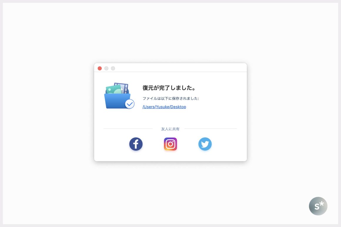 保存先を設定して復元すると、あっという間に処理が完了しました。めちゃめちゃ簡単です。