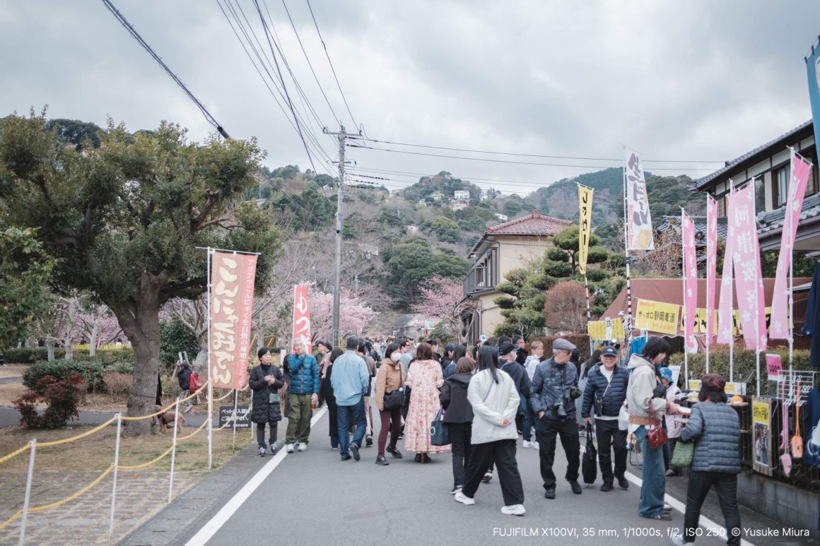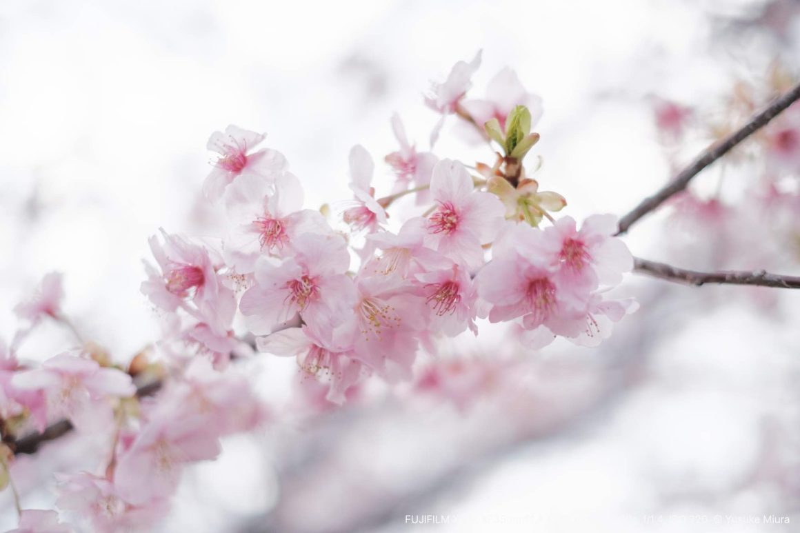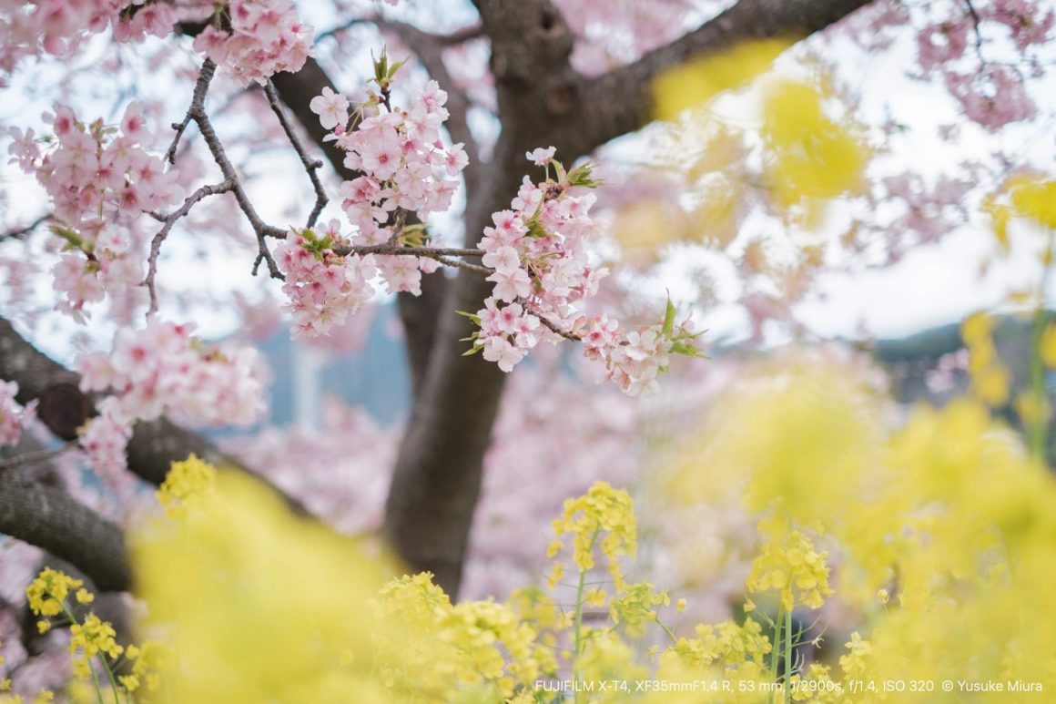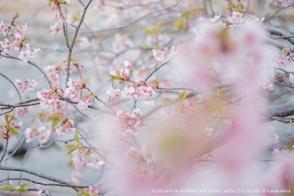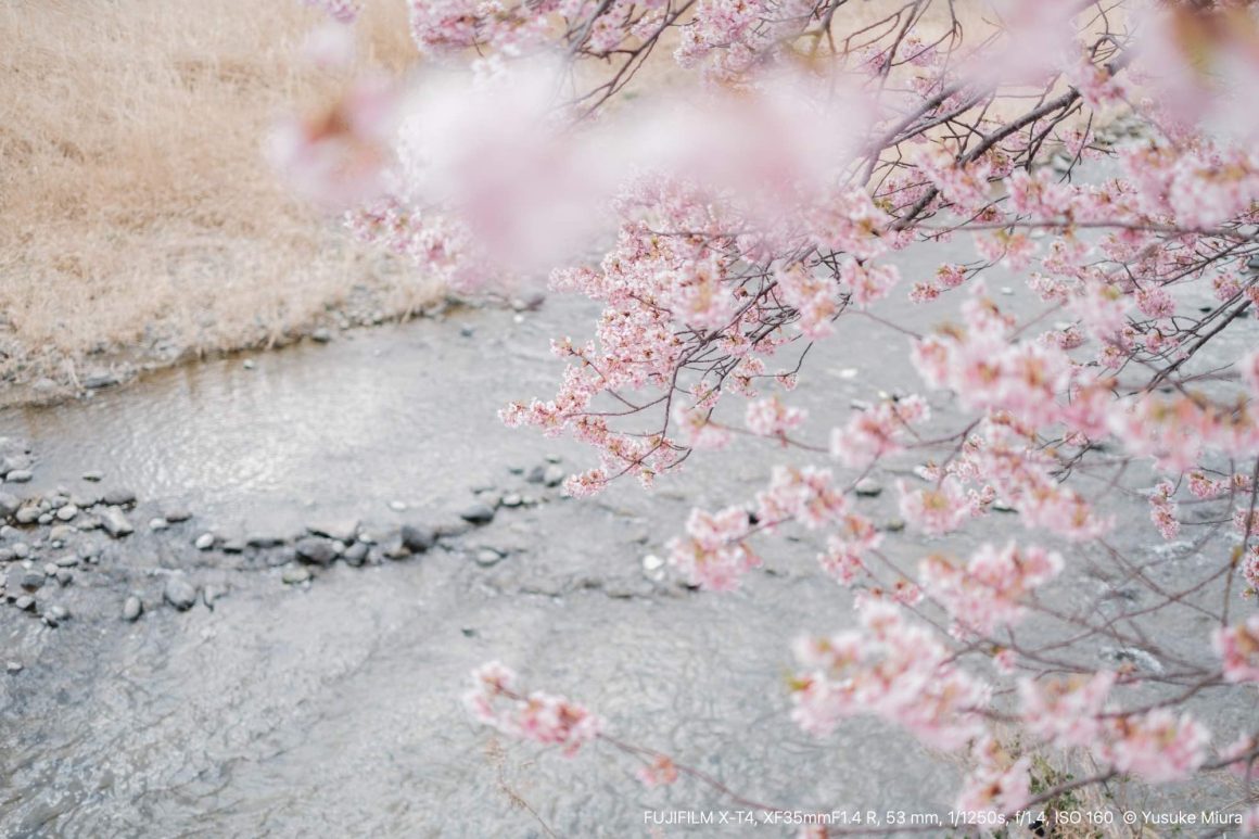 手に持ったカメラを河津桜に向けます。確かに桜が咲いているその場の風景は去年と同じだけれど、この満開で咲き誇る桜は今この瞬間にしか見ることができないものです。それを目に焼き付けながら、そしてカメラにも収めながら、今年もこの場所に来られたことを嬉しく思いました。