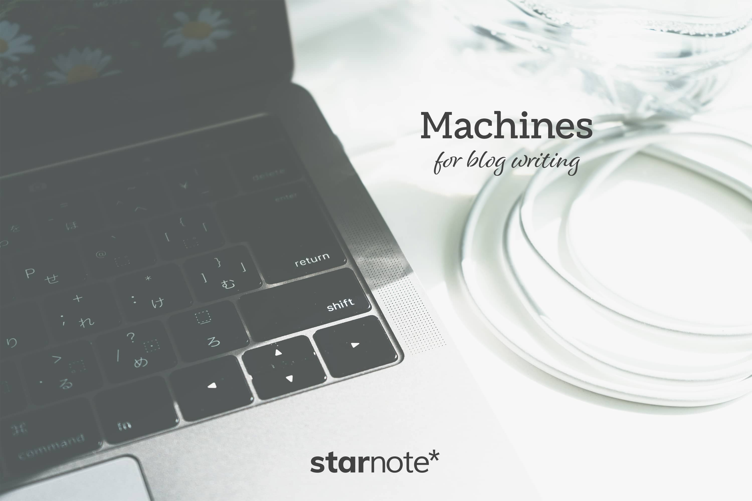 アイキャッチ作成時は、「Machines for blog writing」の文字を置く場所を迷いました。正方形ルールが無ければもう少し右側に配置すると思います。
