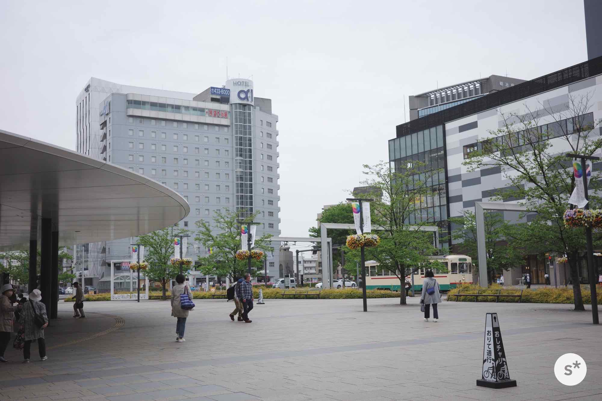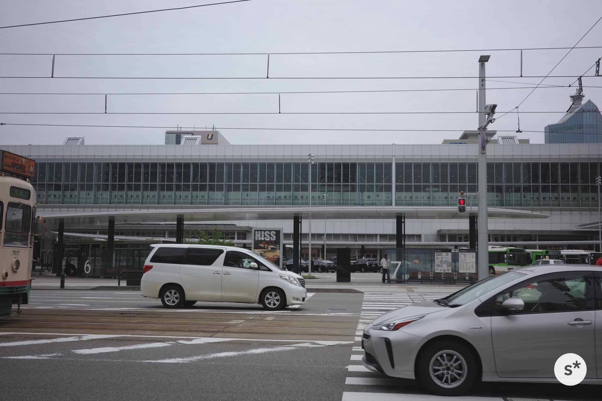 驚いたのは、新幹線の改札から出て目の前に路面電車の乗り場があったこと。駅の高架の下に路面電車がめり込んでるんです。これは観光客としてもとても分かりやすくていいなあ。