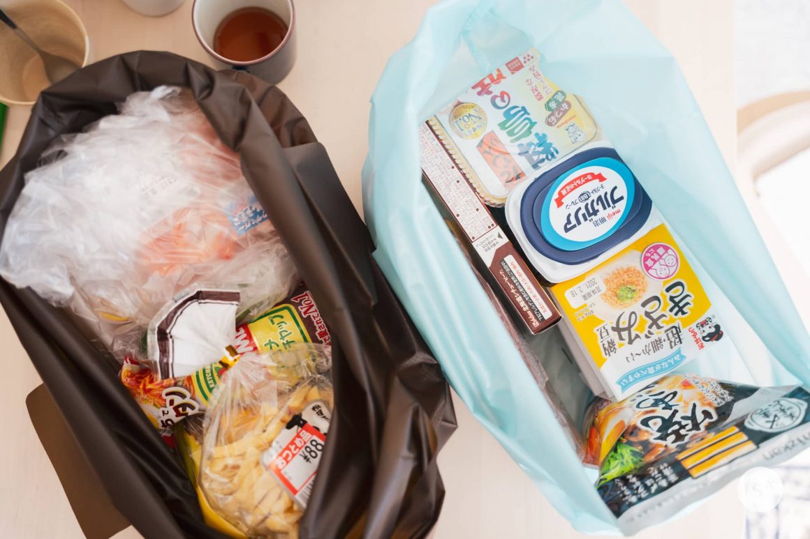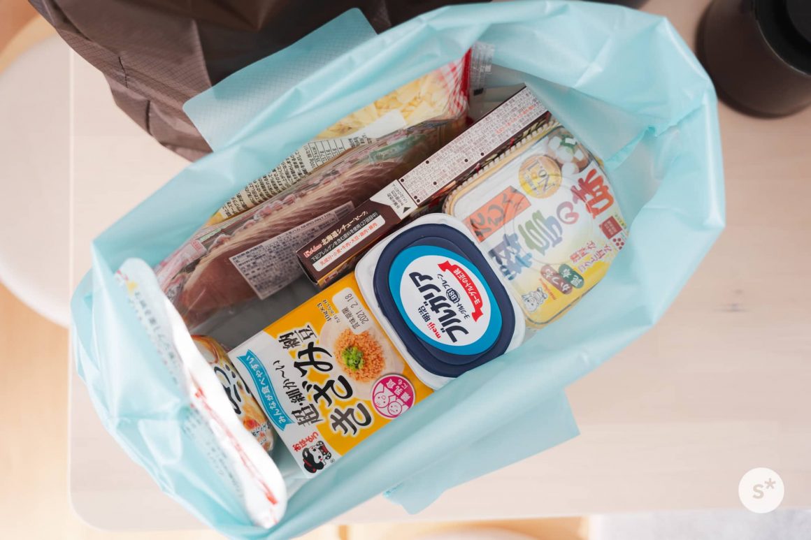 我が家では週末に1週間分の食料をまとめ買いしているので、その買い物で使ってみました。持っていったのは、Lサイズ2枚+Mサイズ1枚の合計3枚。Lサイズ2枚で足りると思われましたが、念のため予備でMサイズも1枚持っていきました。