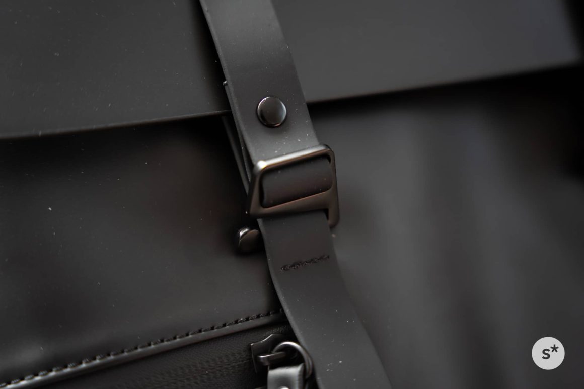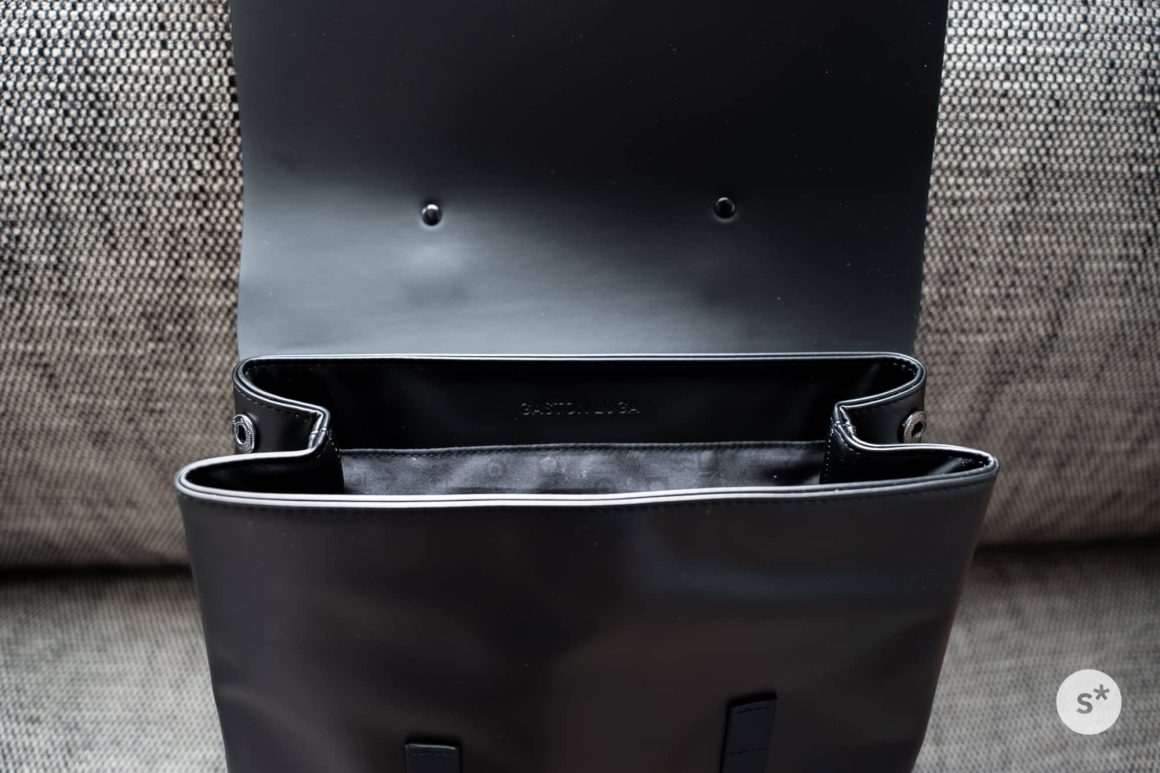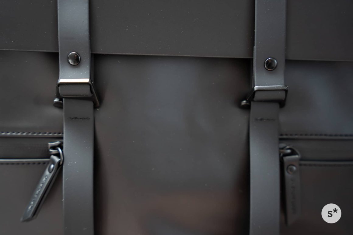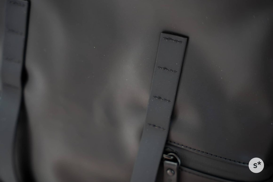 前面の下部にはエンボス加工されたGASTON LUGAのロゴが入っています。バックパック本体に馴染むおしゃれなロゴです。