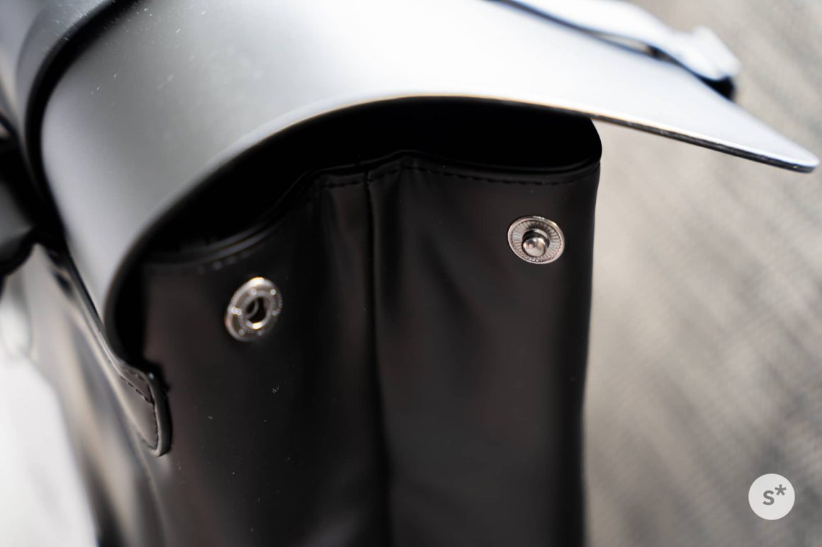 側面の上部には内容量調節用のスナップがついています。もちろん両サイドにありますよ。