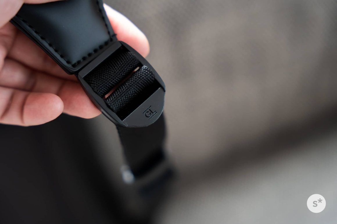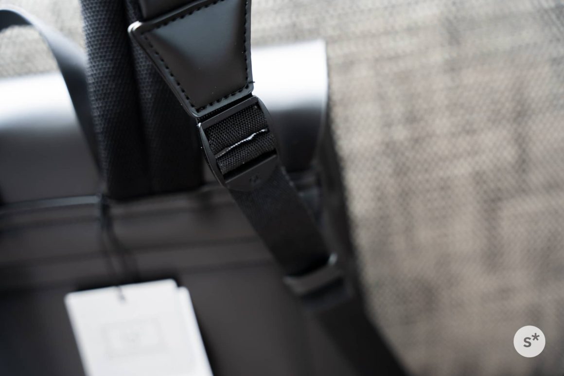 もちろん、ショルダーハーネスの長さ調節もできます。余った紐が垂れないようにストッパーも付いているし、細かな部分にもロゴが入っているし、しっかり作り込まれています。神は細部に宿るのです。