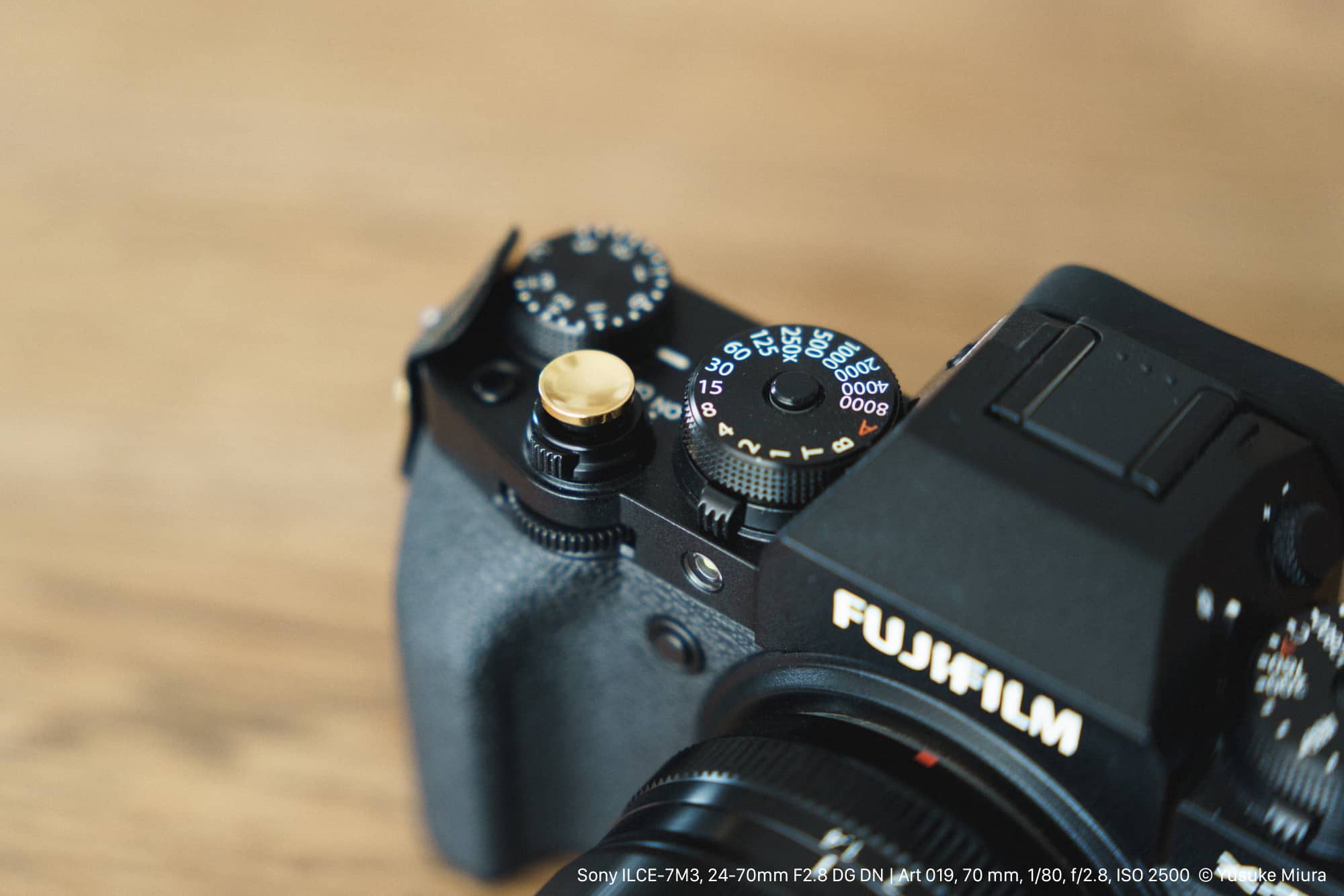 とても簡単に紹介してきましたが、ブラックボディのFUJIFILM X-T4に金色のレリーズボタンを取り付けたら、センスのいいワンポイントアクセントになったという話でした。