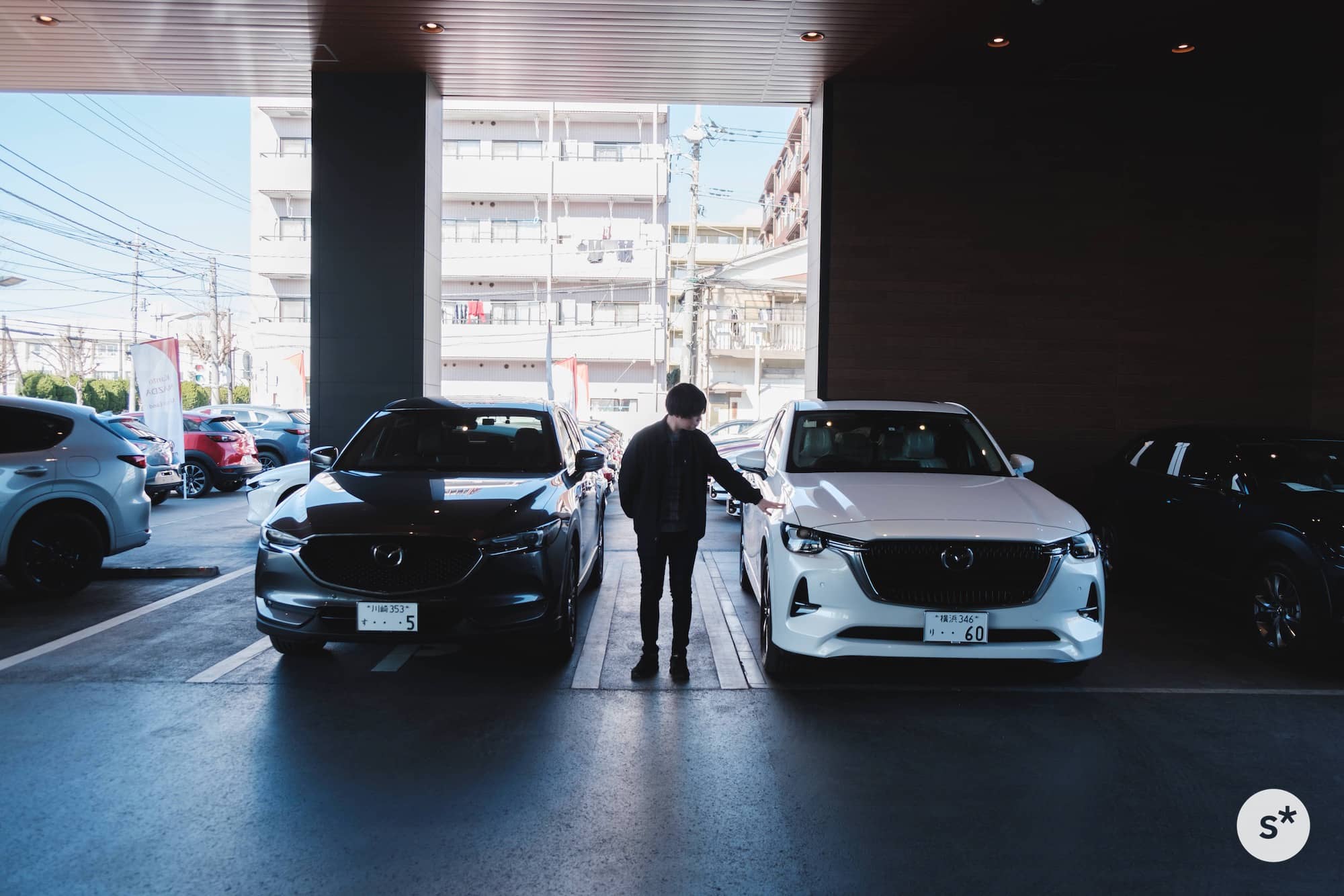 家から30分程度、最後のCX-5でのドライブです。少し時間があったから9月まで住んでた家の前を通ってちら見しつつ(新しい人が入居しているみたいだった)、いつものディーラーに行きました。到着すると、すでに僕のCX-60が準備されていました。