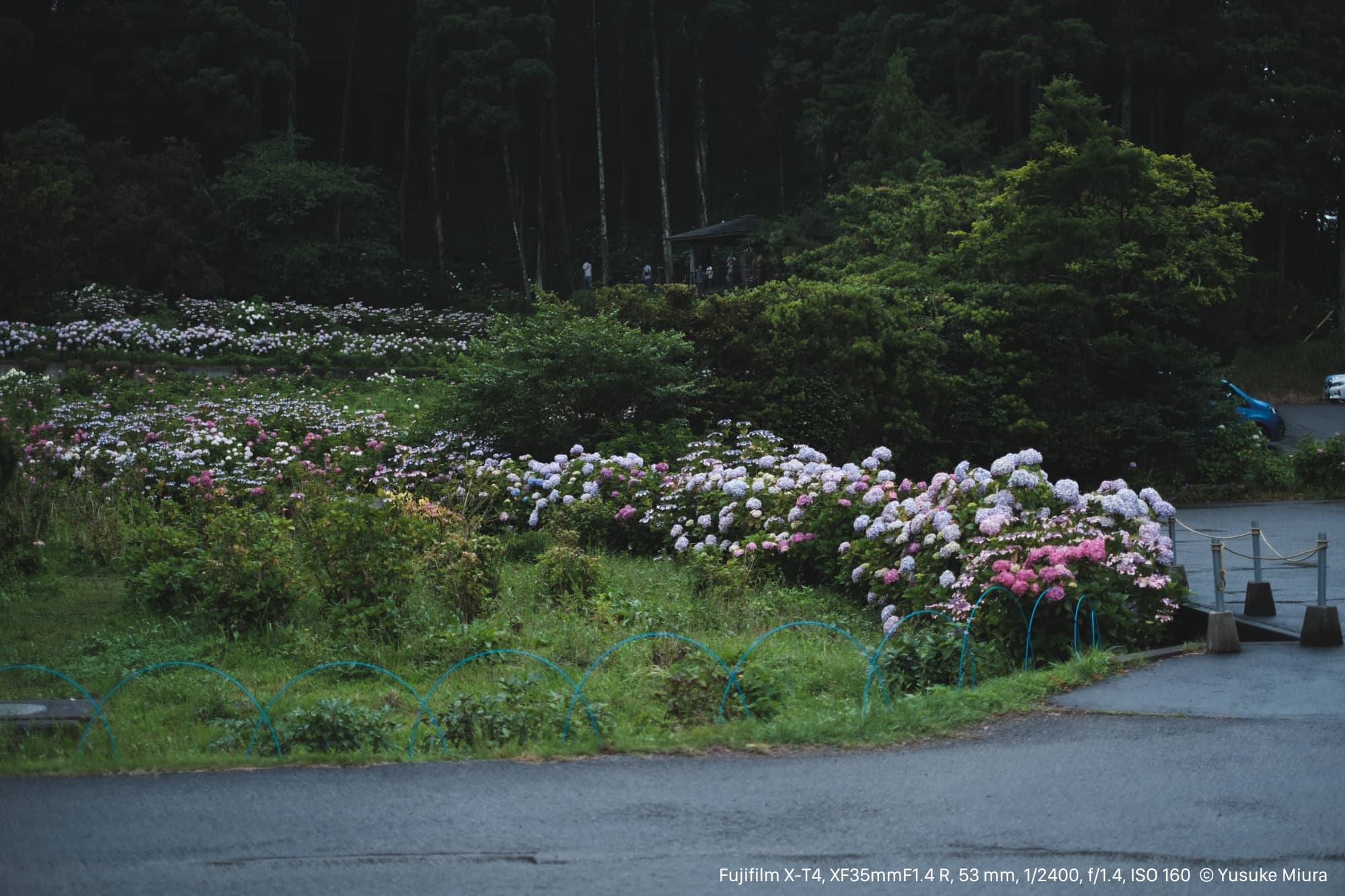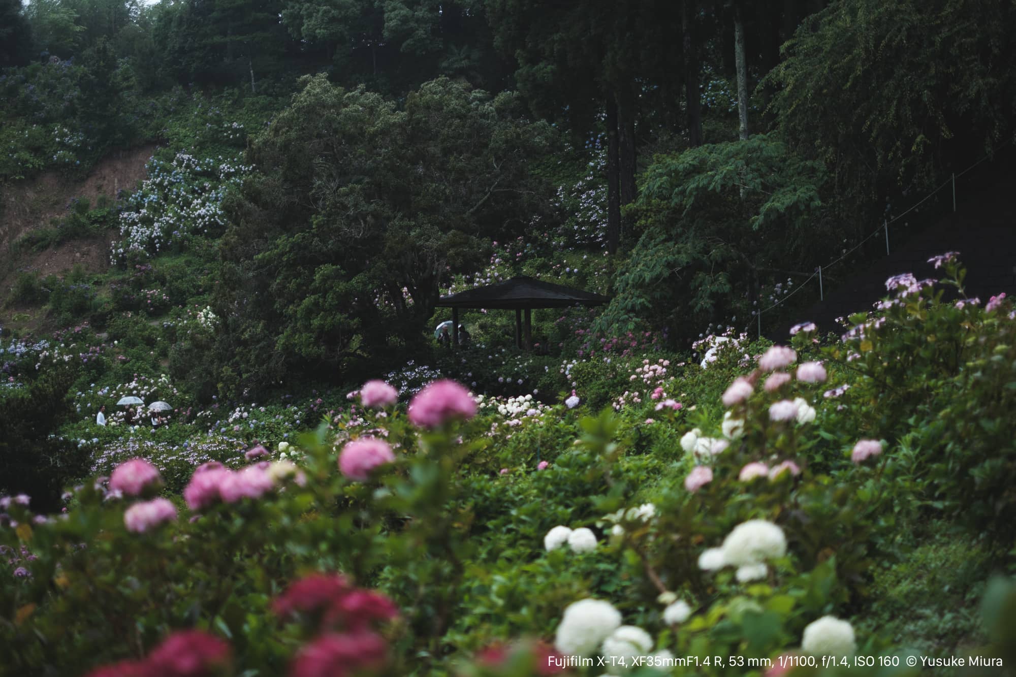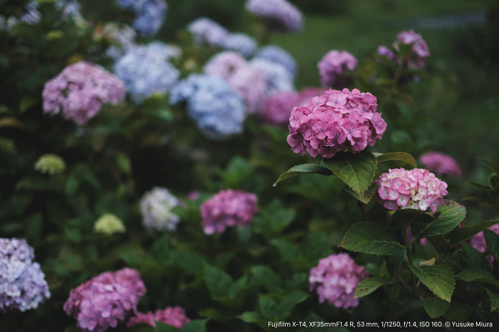 先日は雨の中、茂原にある「服部農園あじさい屋敷」に行ってきました。そこには何を思ったか防水でもないXF35mmF1.4 Rを持っていって写真を撮ってきたので、いくつか作例としてご紹介します。