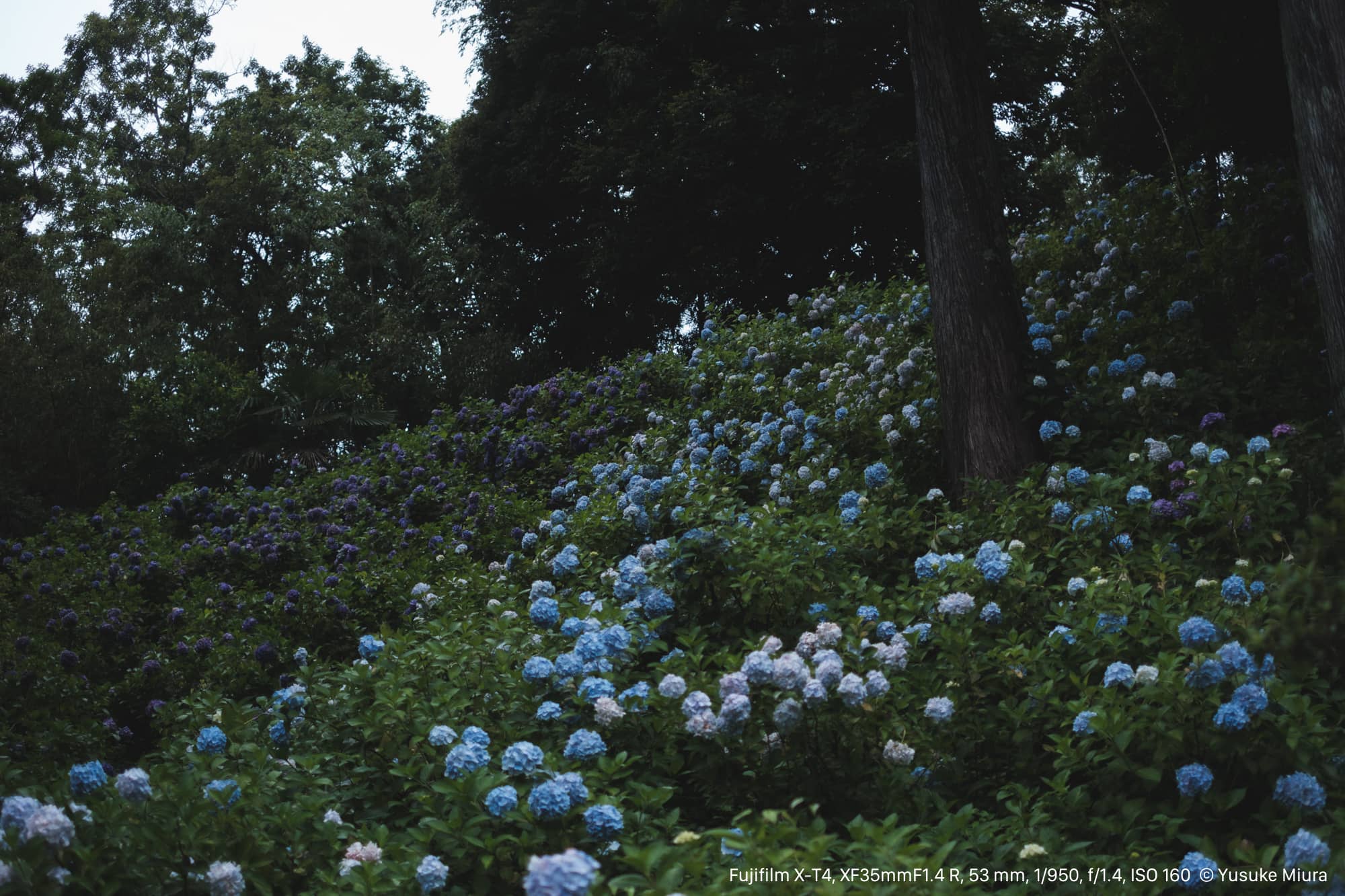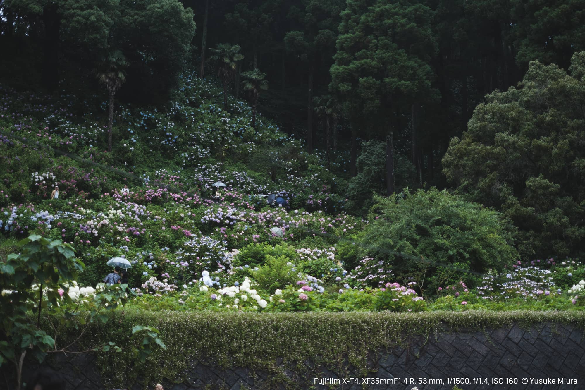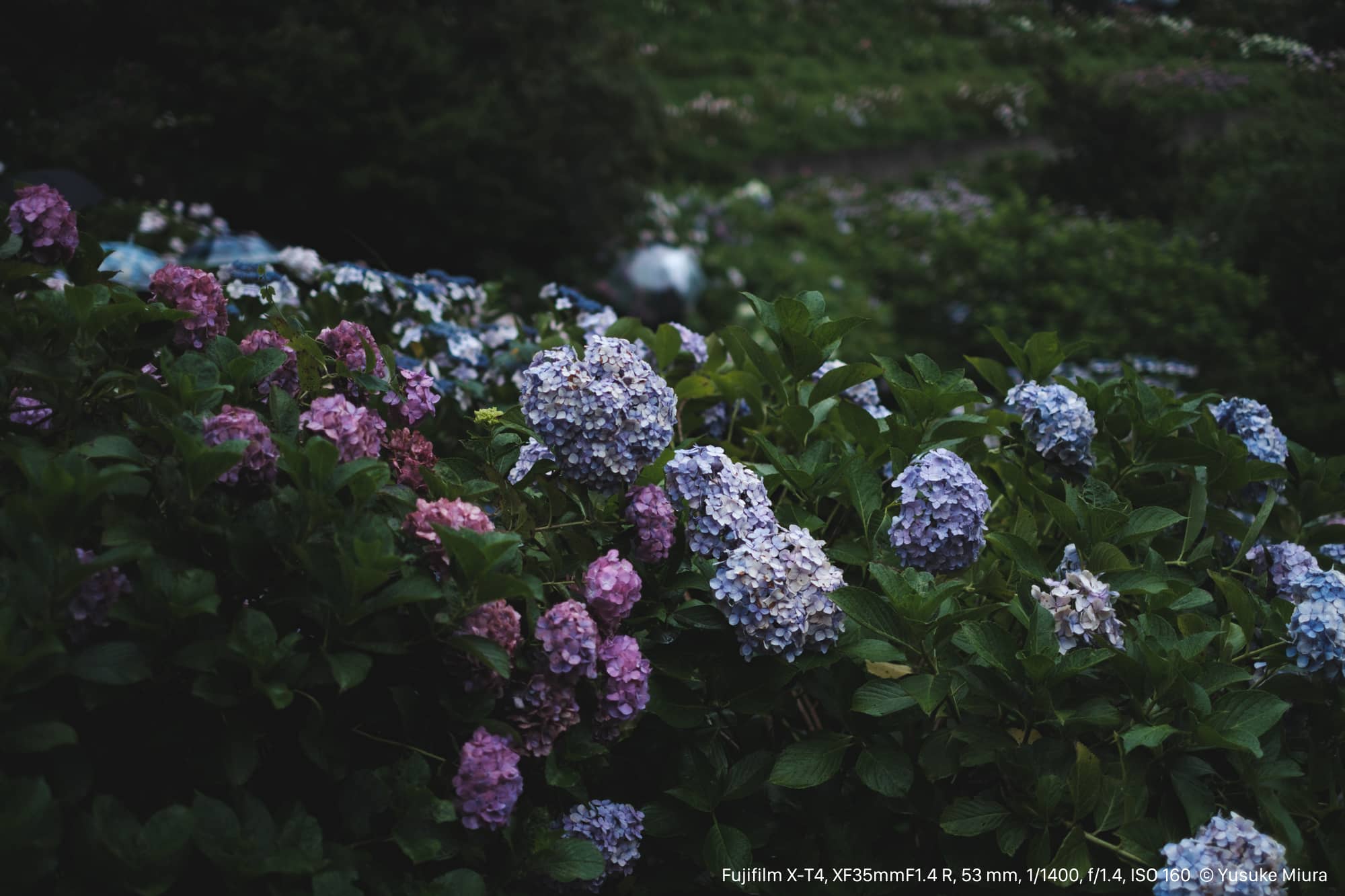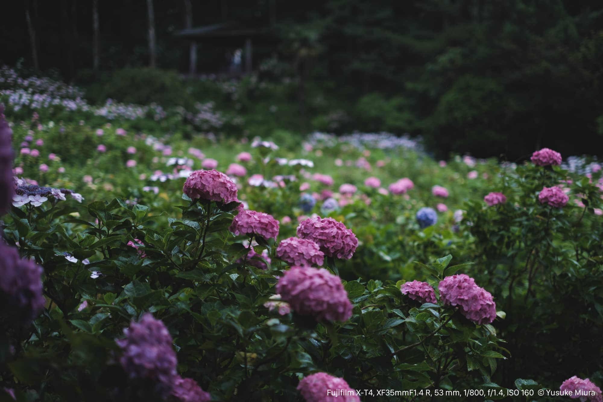 先日は雨の中、茂原にある「服部農園あじさい屋敷」に行ってきました。そこには何を思ったか防水でもないXF35mmF1.4 Rを持っていって写真を撮ってきたので、いくつか作例としてご紹介します。