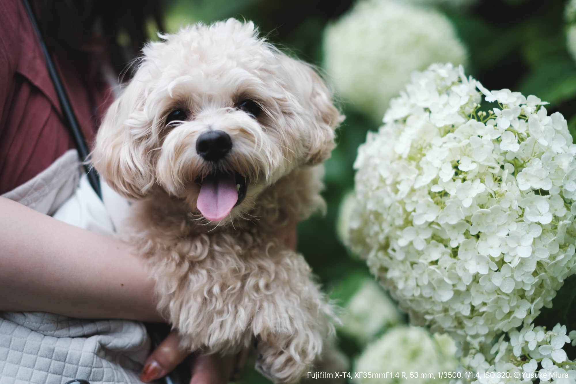 やってきたのは千葉県茂原市にある「服部農園あじさい屋敷」。斜面いっぱいの紫陽花を犬と一緒に楽しむことができると聞き、初めて訪れました。