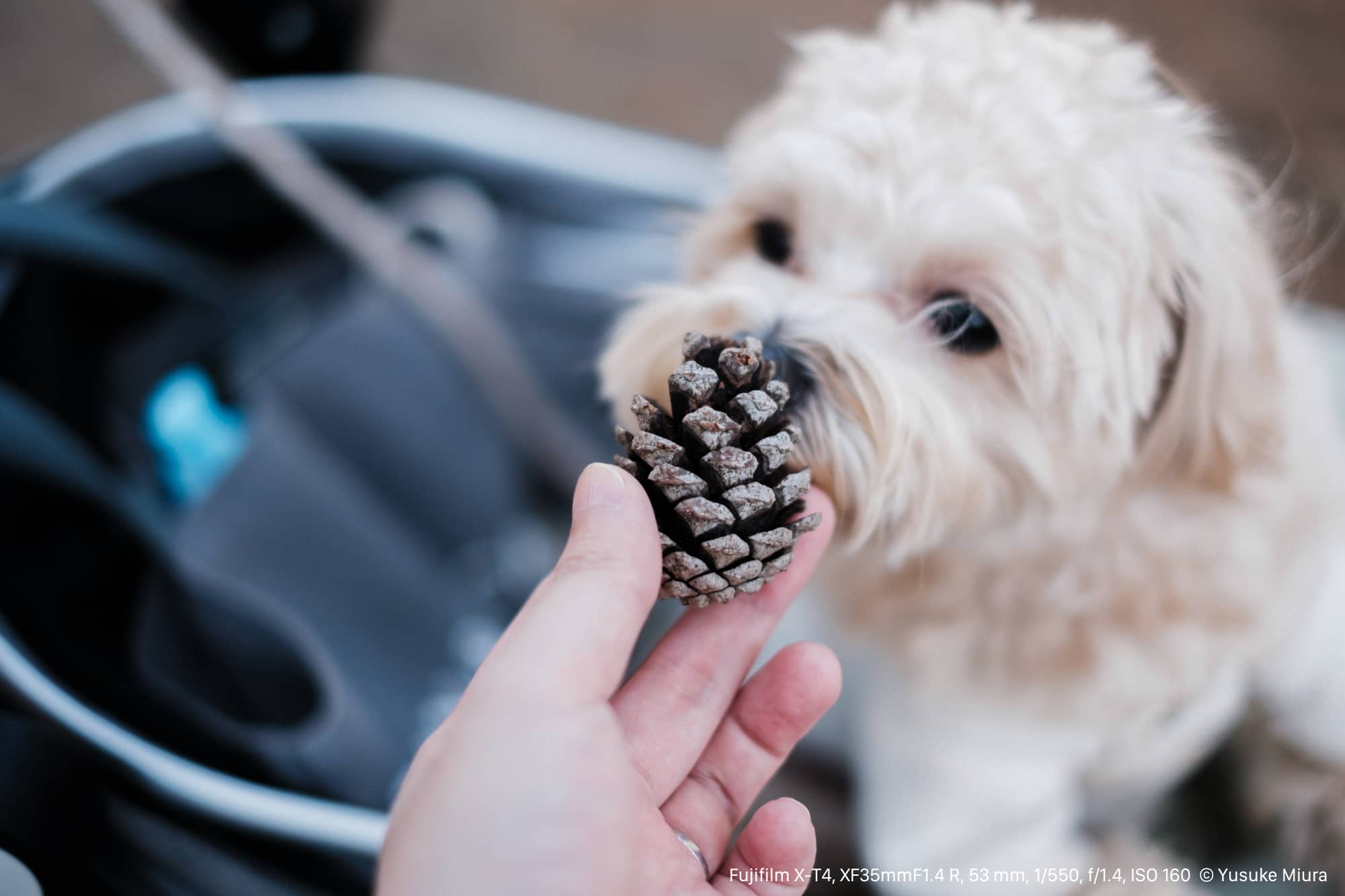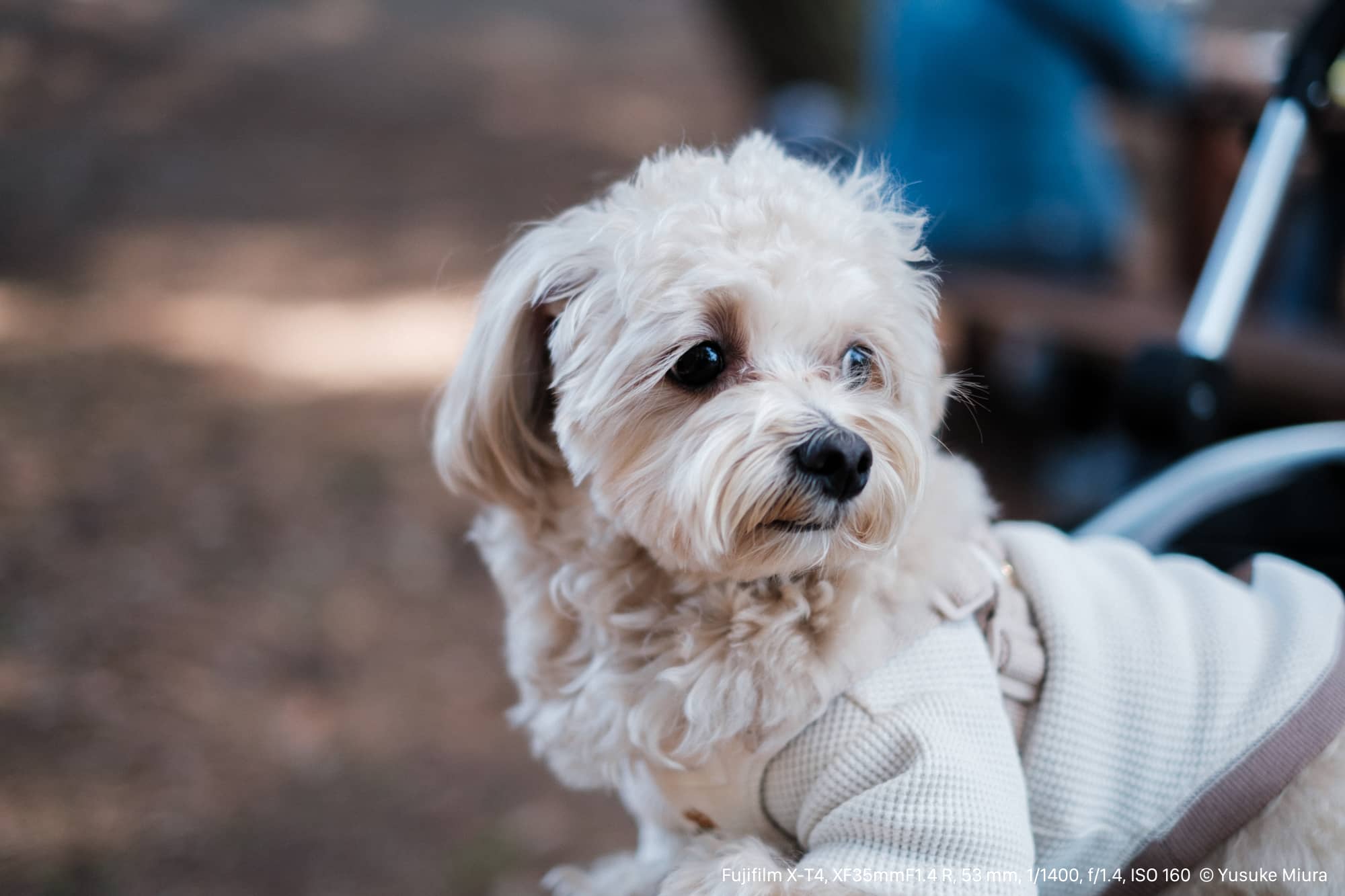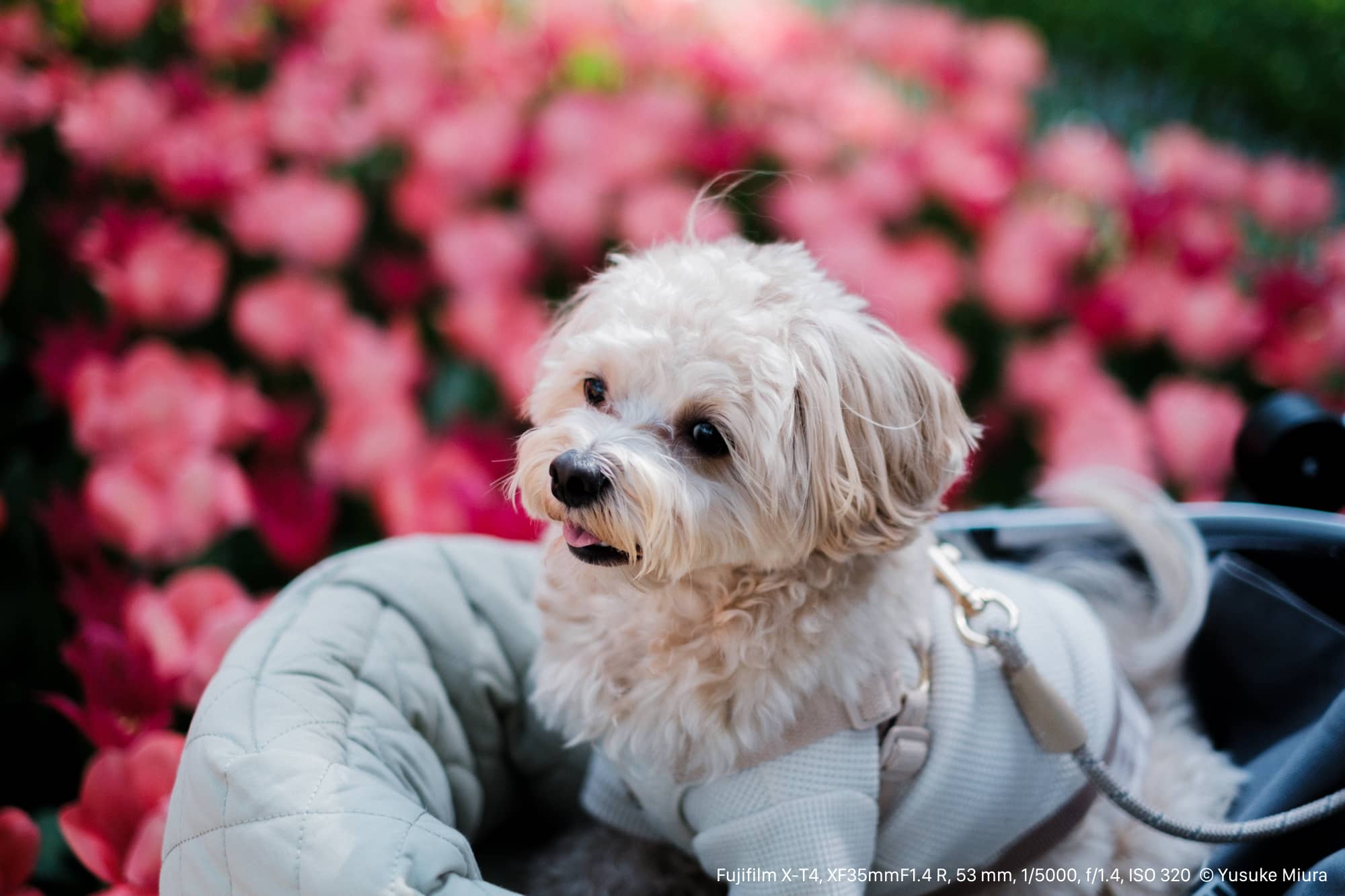 いつものように犬を連れて行きましたが、この時点で既に楽しそう。うちの犬は変わっていて歩くのはあまり好きではないみたいで、すぐにカートに乗せろと言ってくるんです。いい身分だねえ。