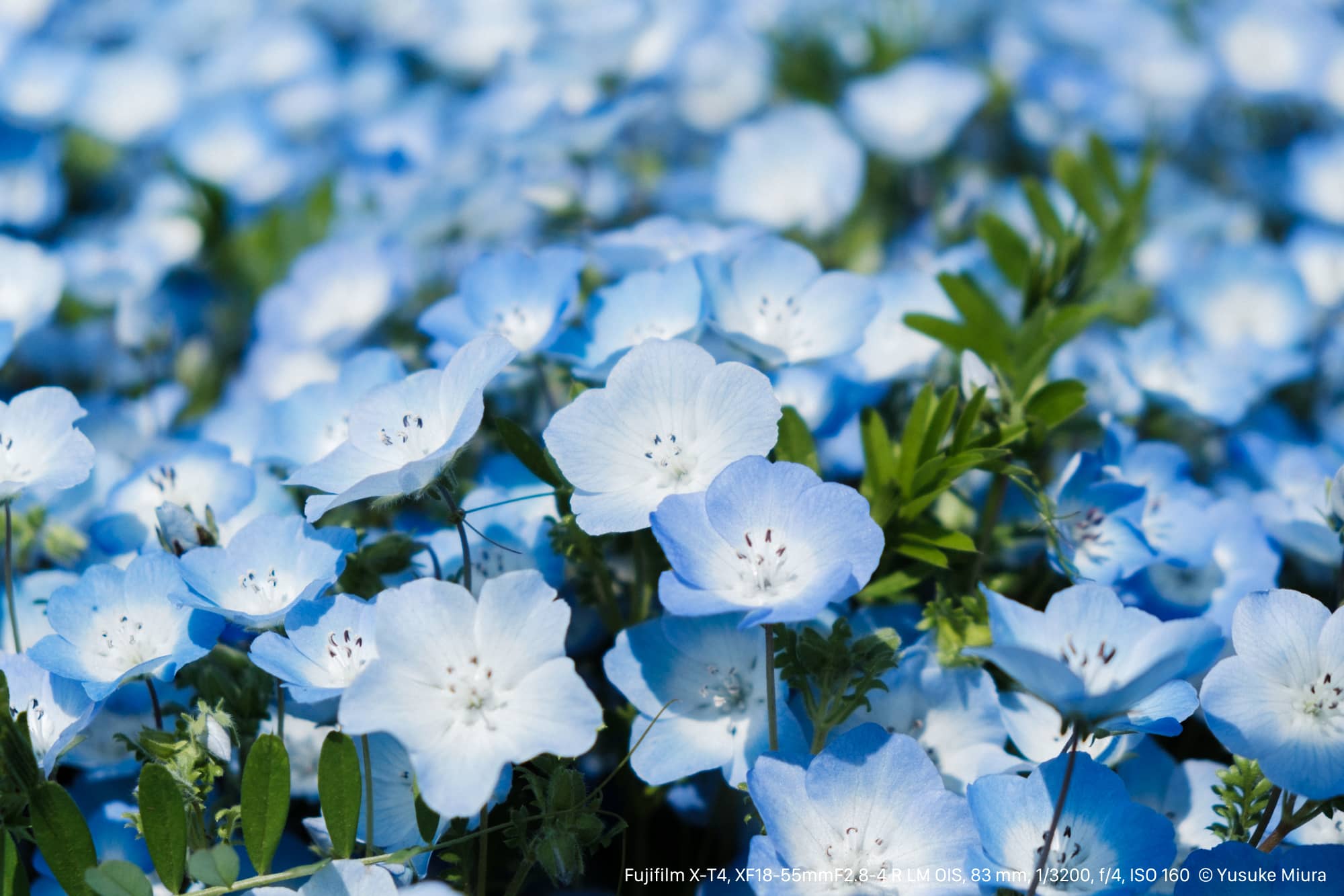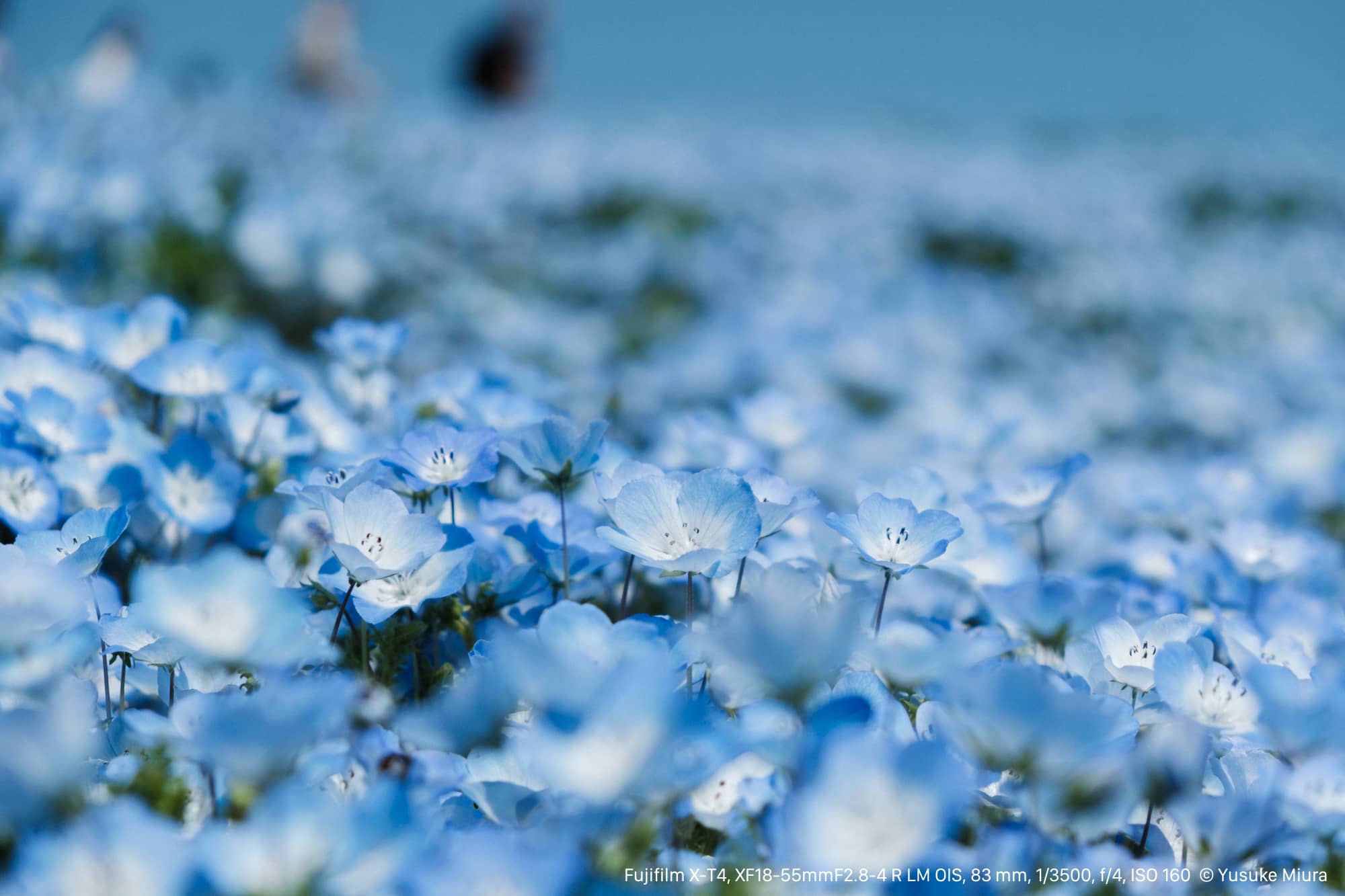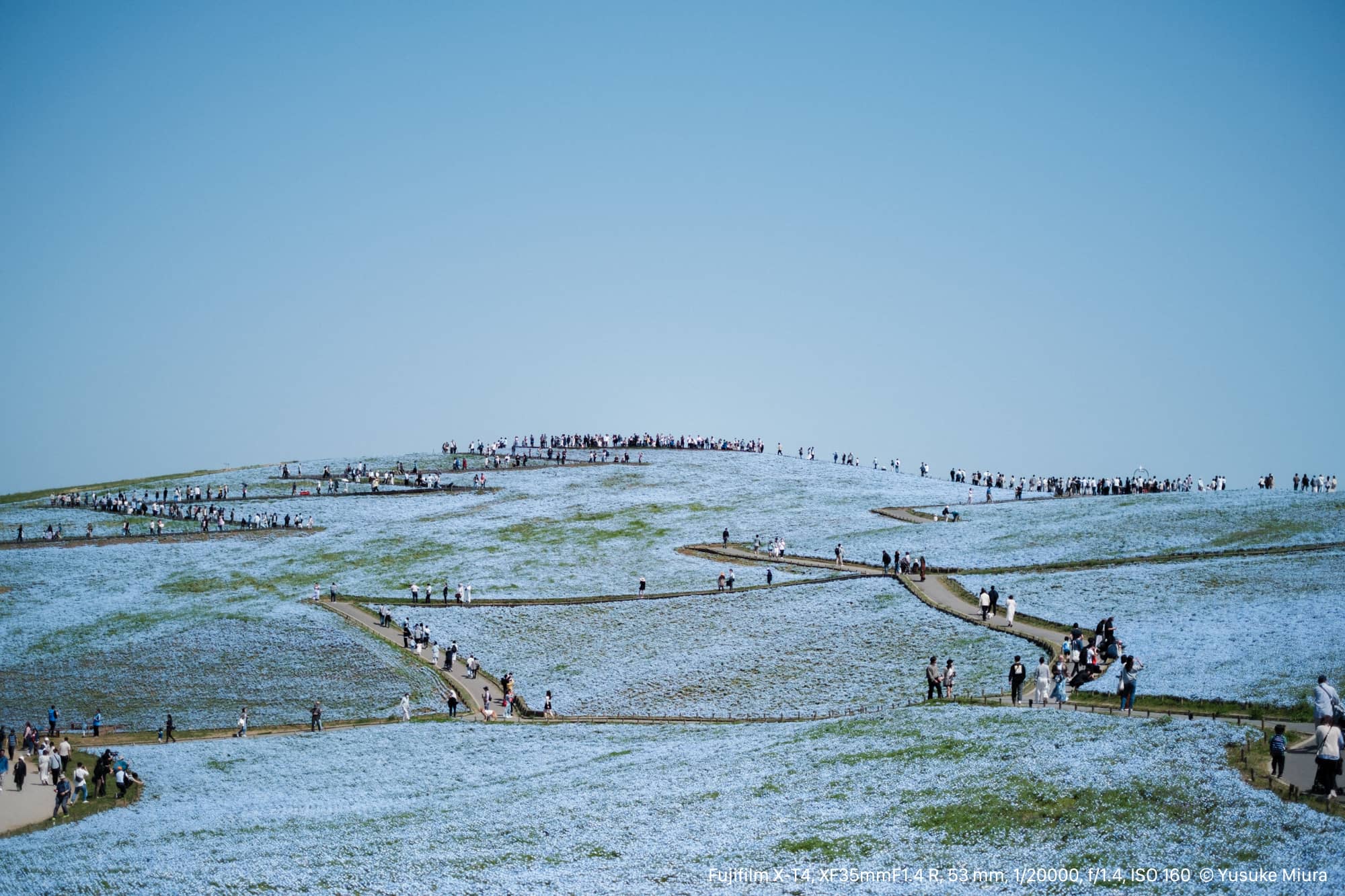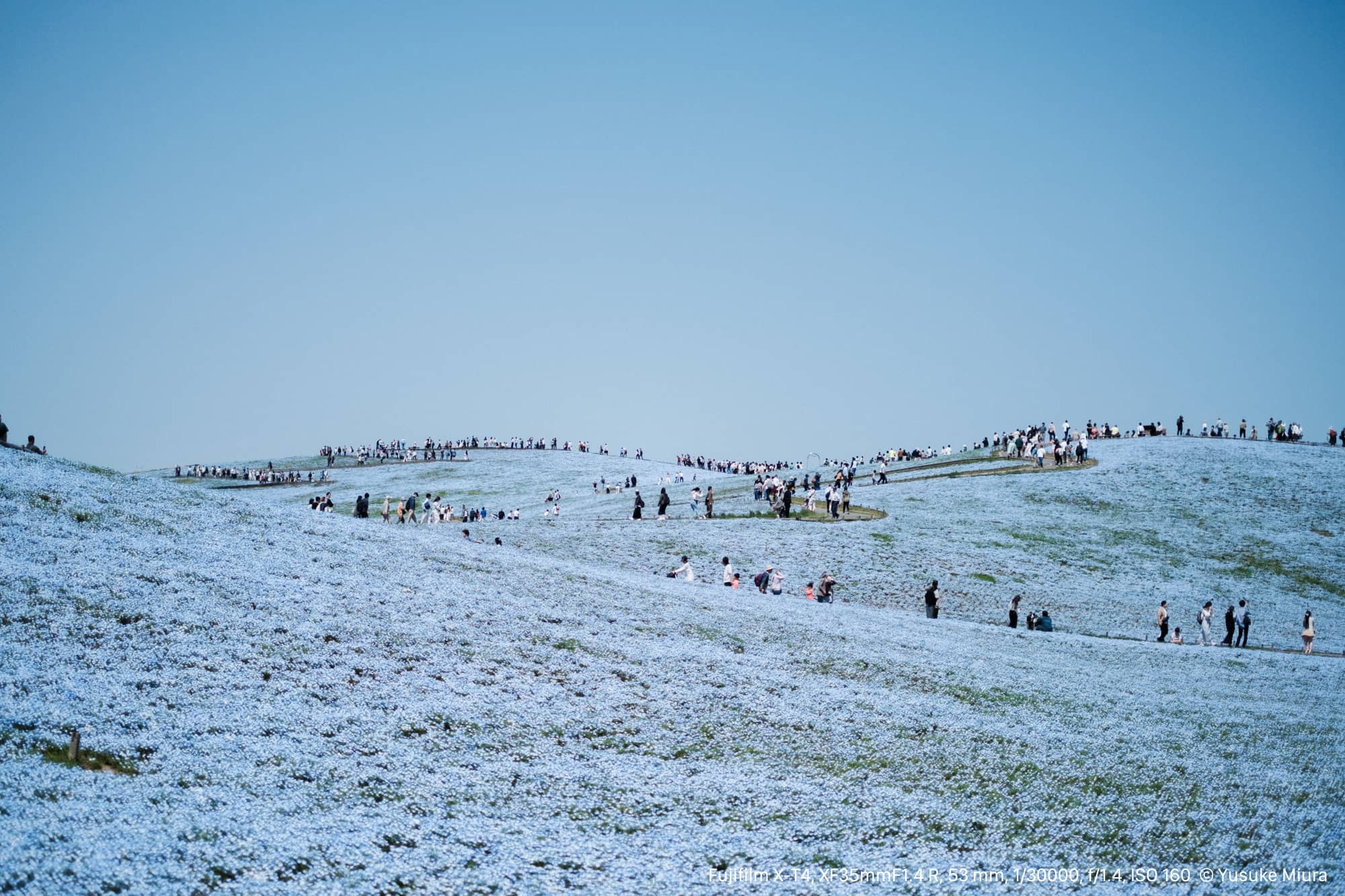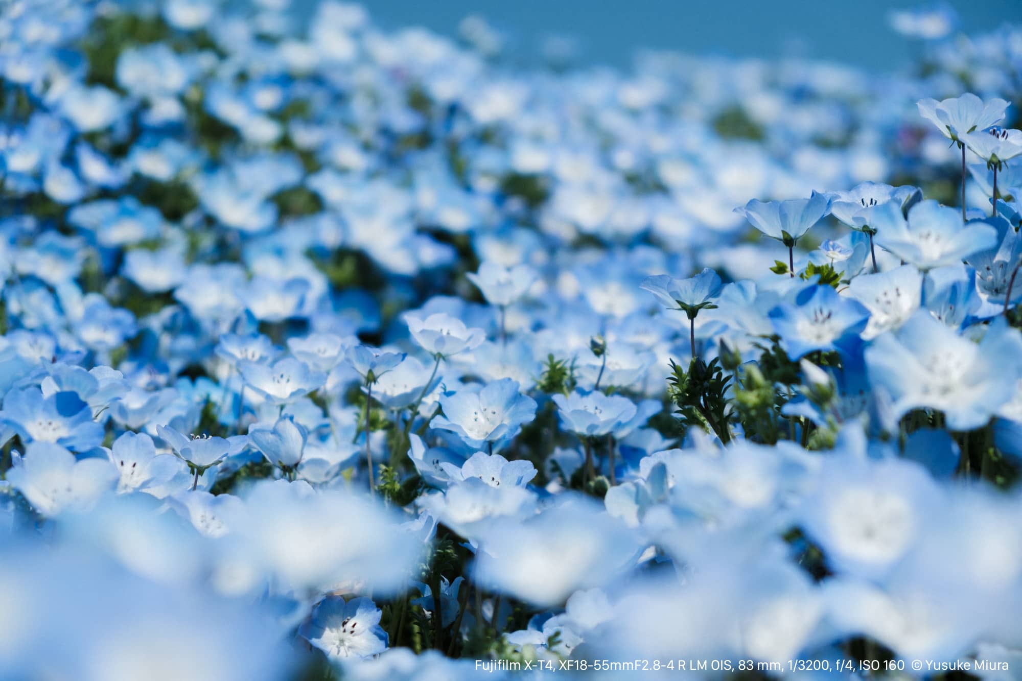 さて、ここからは散歩しながらネモフィラの写真を撮りまくります。このために来たようなものだから、後悔のないように心が動いた景色は全てカメラに収めていきます。新しく迎えたレンズの本領発揮です。