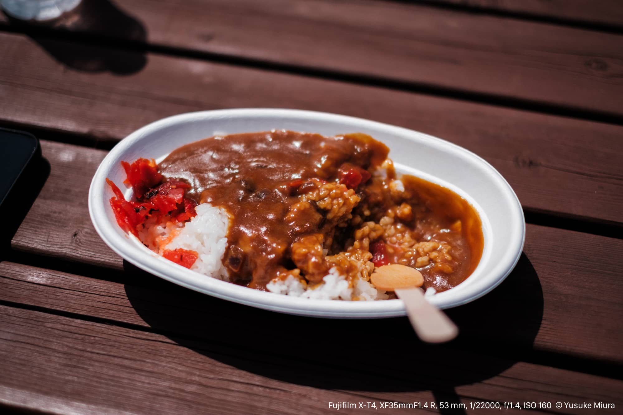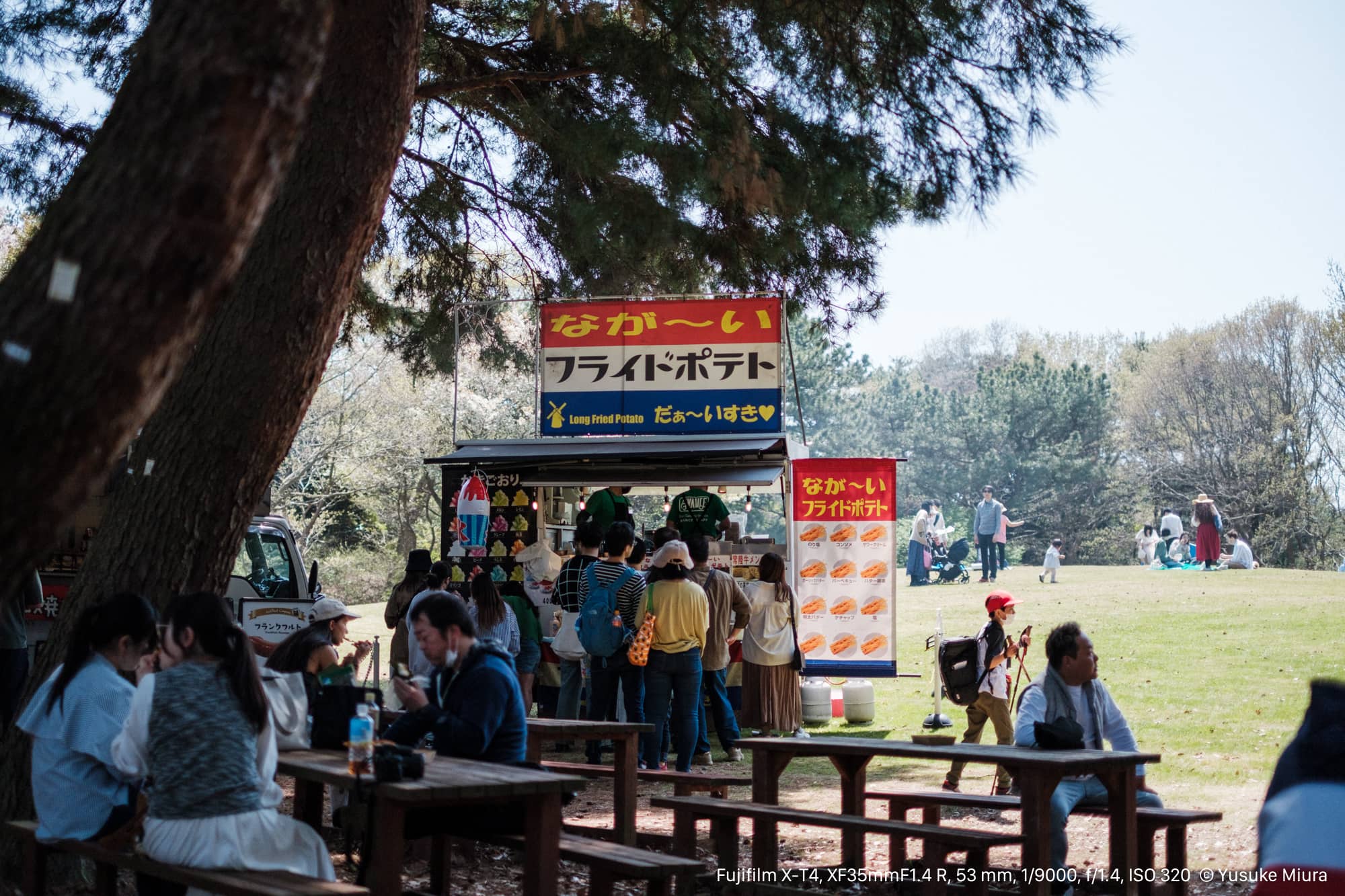 園内にはたくさんのキッチンカーや出店があって、いろんな料理を食べ歩くことができるようになっています。お昼時でも比較的席を確保しやすく、もし確保できなくても芝生エリアでのんびりと食べることができます。