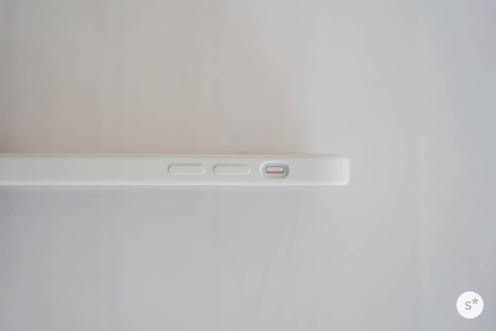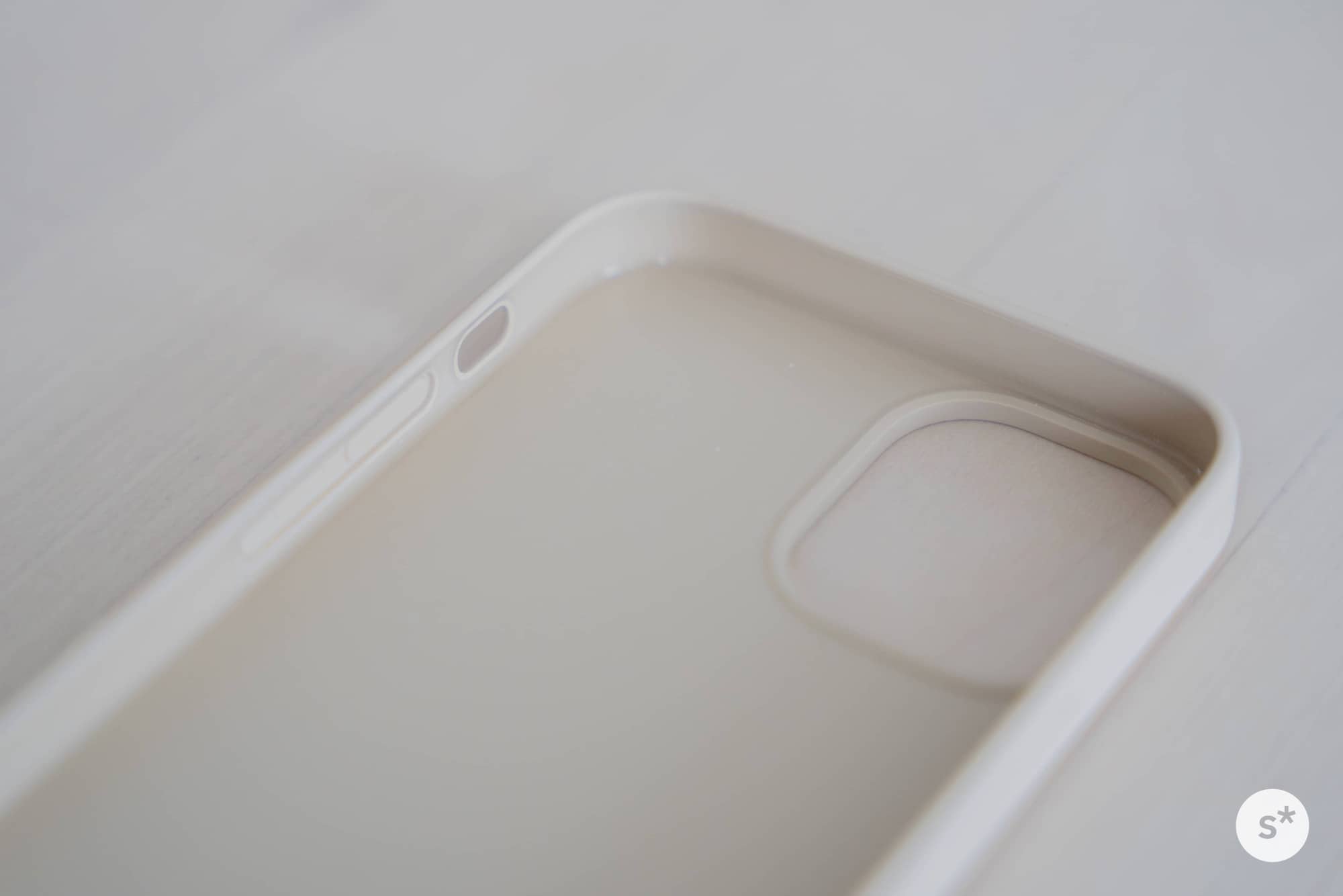 さすがにボタンの部分は、Apple純正ケースのように別パーツではなく、型押しでした。コストを考えるとこれは仕方ない。サイレントスイッチ周りの処理もきれいです。
