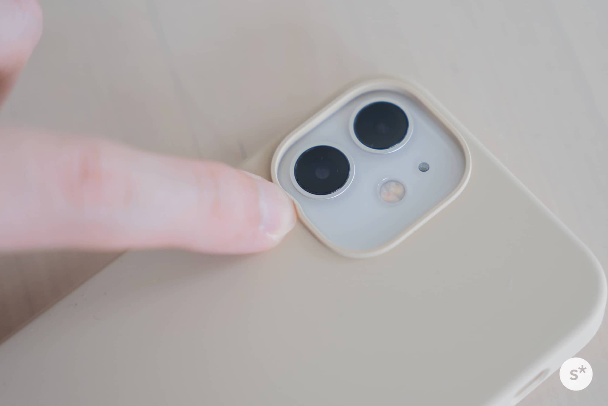 カメラの周辺も別パーツではなく型押しのシリコンです。プラスチック基板もなく柔らかいので、押すと凹みます。とはいえ高さは十分で、しっかりとカメラを保護してくれます。