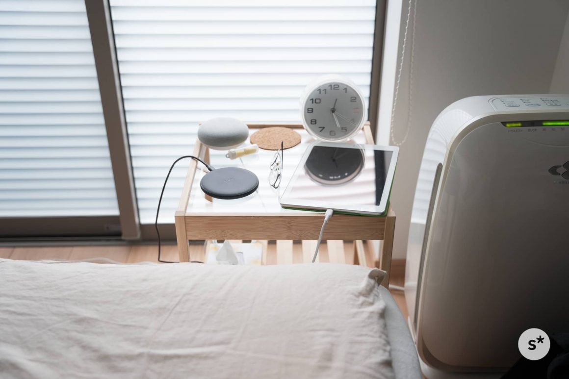 寝室の照明にはPhilips Hueを使っています。Google Home Miniをベッドサイドに置いておくことで、声を張らずに照明の操作ができます。また、朝の目覚ましとしても使っています。