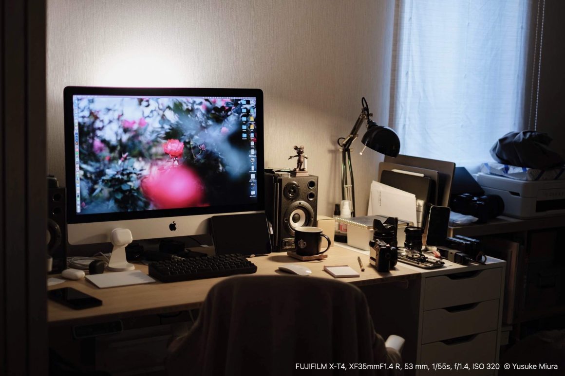 まず譲れないのは、ディスプレイのクオリティ。iMacのRetina 5Kディスプレイは、写真の色再現性も、文字の精細さも抜群で、日々の作業においてそれが気分を大きく左右します。僕にとって、美しいディスプレイは、効率よりも前に、インスピレーションの土台なんですよね。