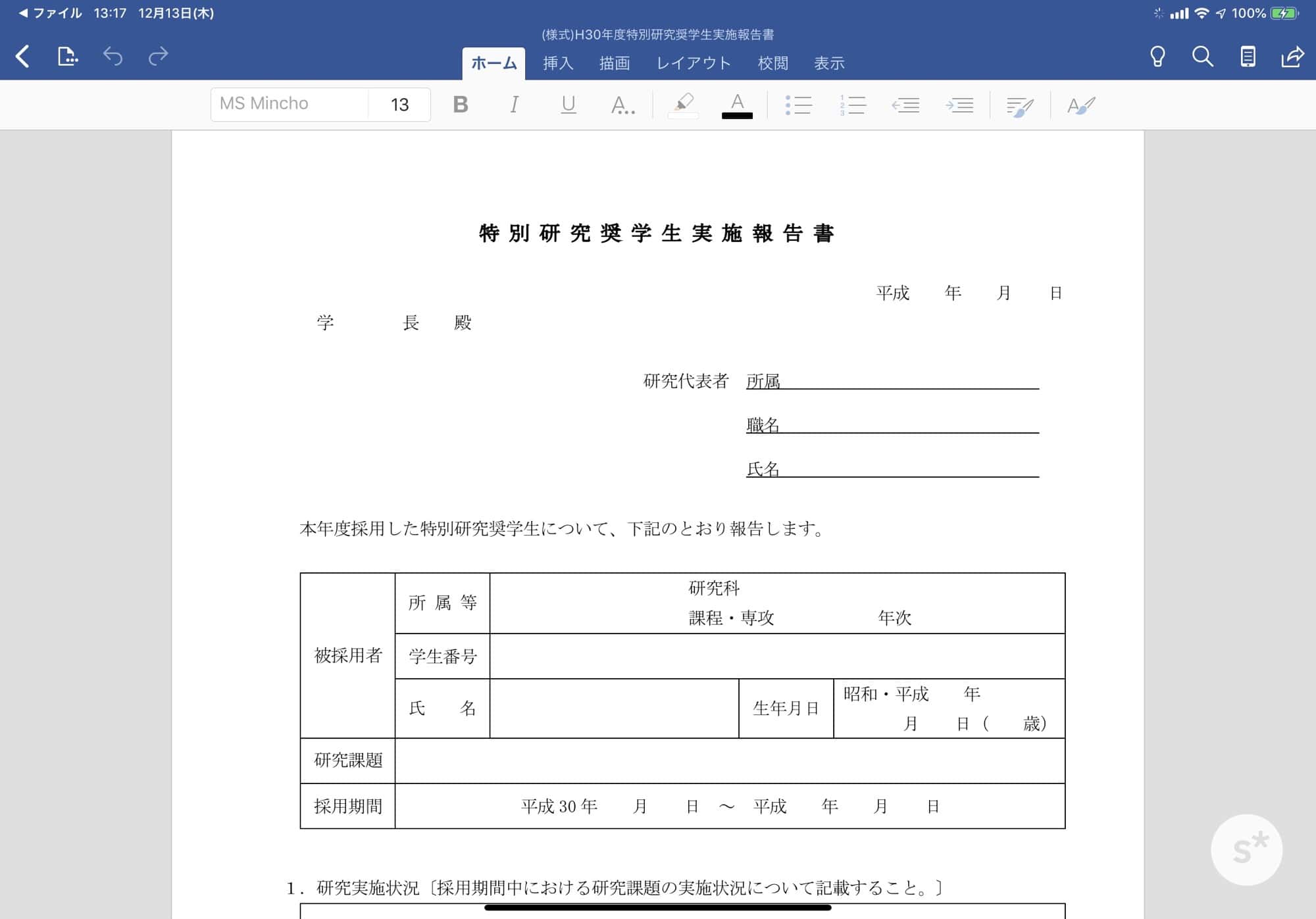 Wordで報告書を編集してみた