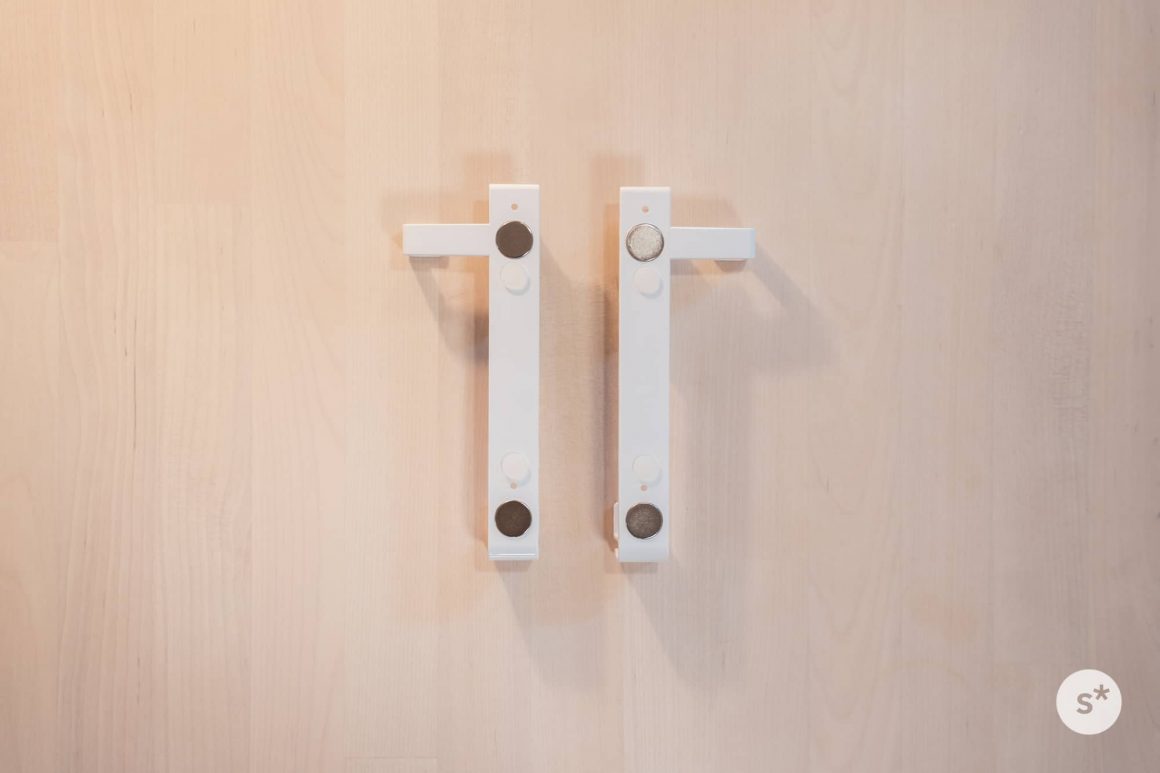 また、磁石の下にはシリコンのスペーサーが入っています(白くて丸いやつ)。磁石よりも出っ張っているので、金属製の磁石が直接接触して固定面に傷がつくのを防ぎます。