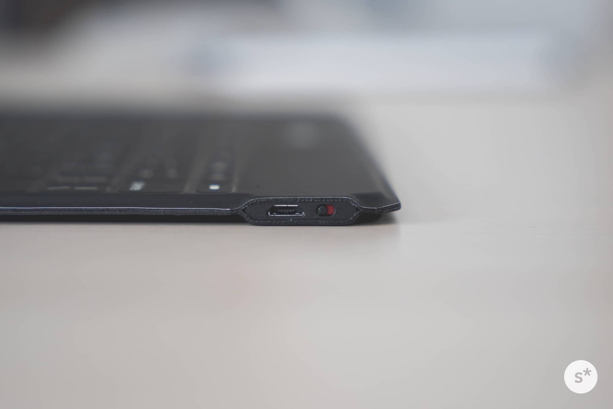 1枚の薄い板のようなシリコン素材のキーボードで、正直キータッチは微妙。でも、180gという軽さと、雑に扱ってもiPadに傷つく心配のない素材というのが気に入っています。