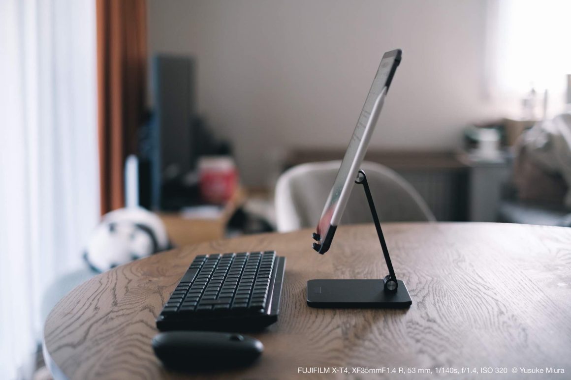 ただかっこよさを求めて宙に浮かせるのって、なかなか痛々しいものがあるじゃないですか。でも、これは宙に浮かせるメリットがしっかりあって、理に適っている。つまり、スタンドに乗せることで視線が上がるし、縦向きだから長文を書くときの一覧性まで上がっている。