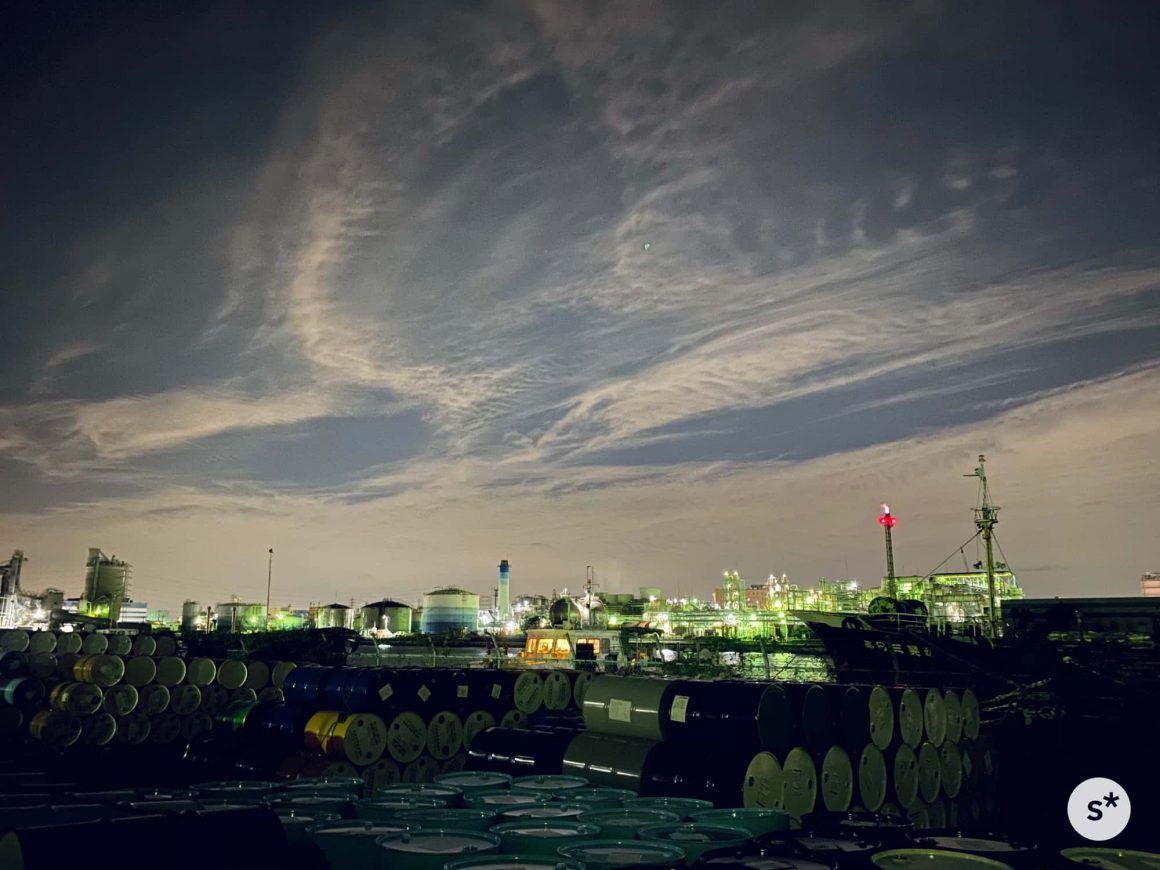 川崎の工場夜景をナイトモードで。すごすぎて笑っちゃう。