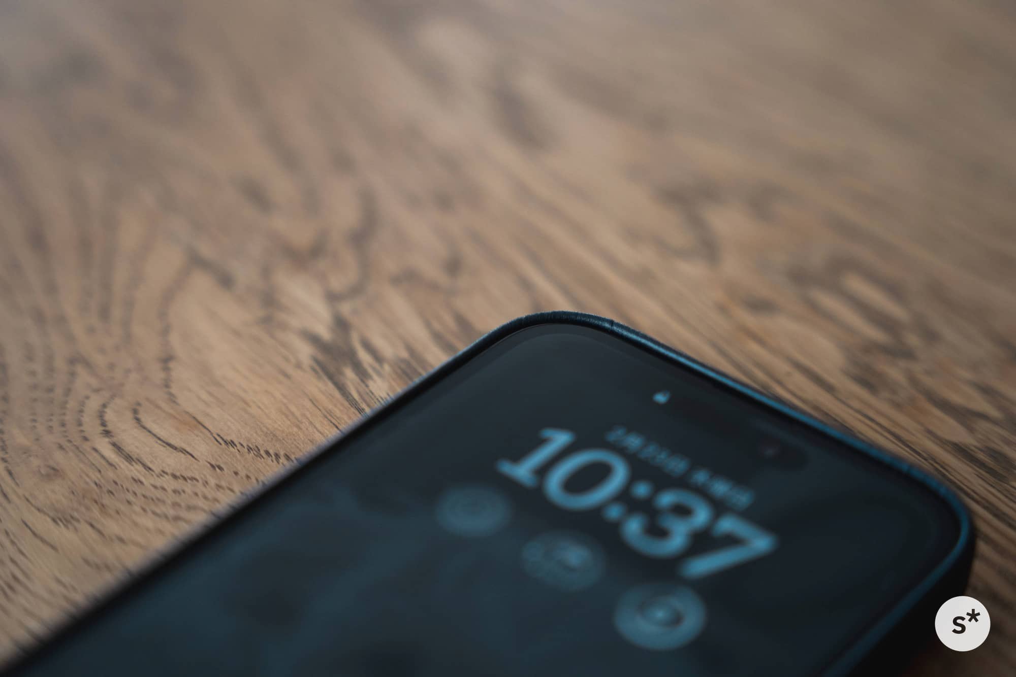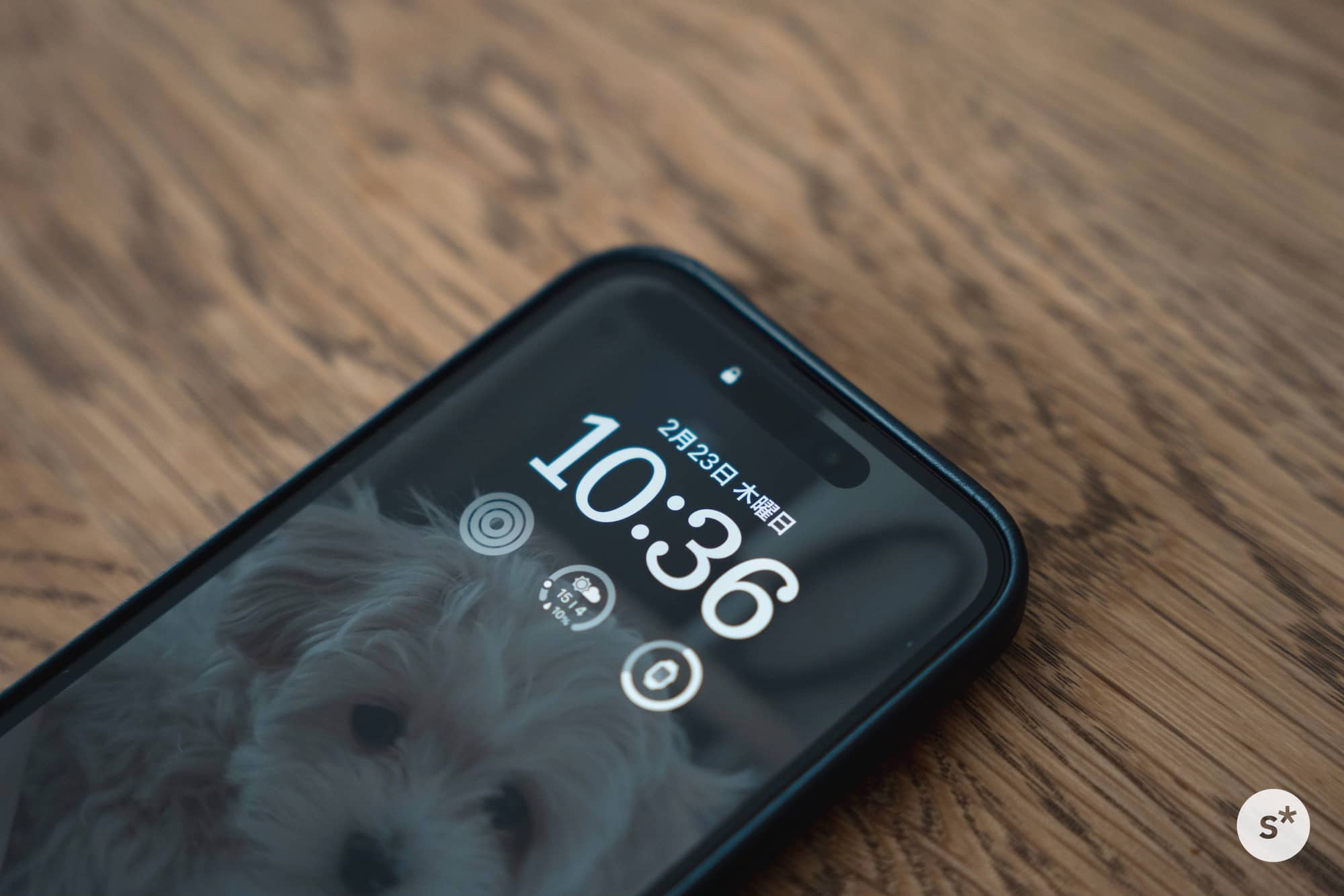 iPhone 14はロック画面の常時表示にも対応し、裏返しておきたいシチュエーションも増えたから、これはありがたいです。僕は保護フィルムの類は使わないことにしているので、できるだけ机と接触する機会が少ないに越したことはありません。