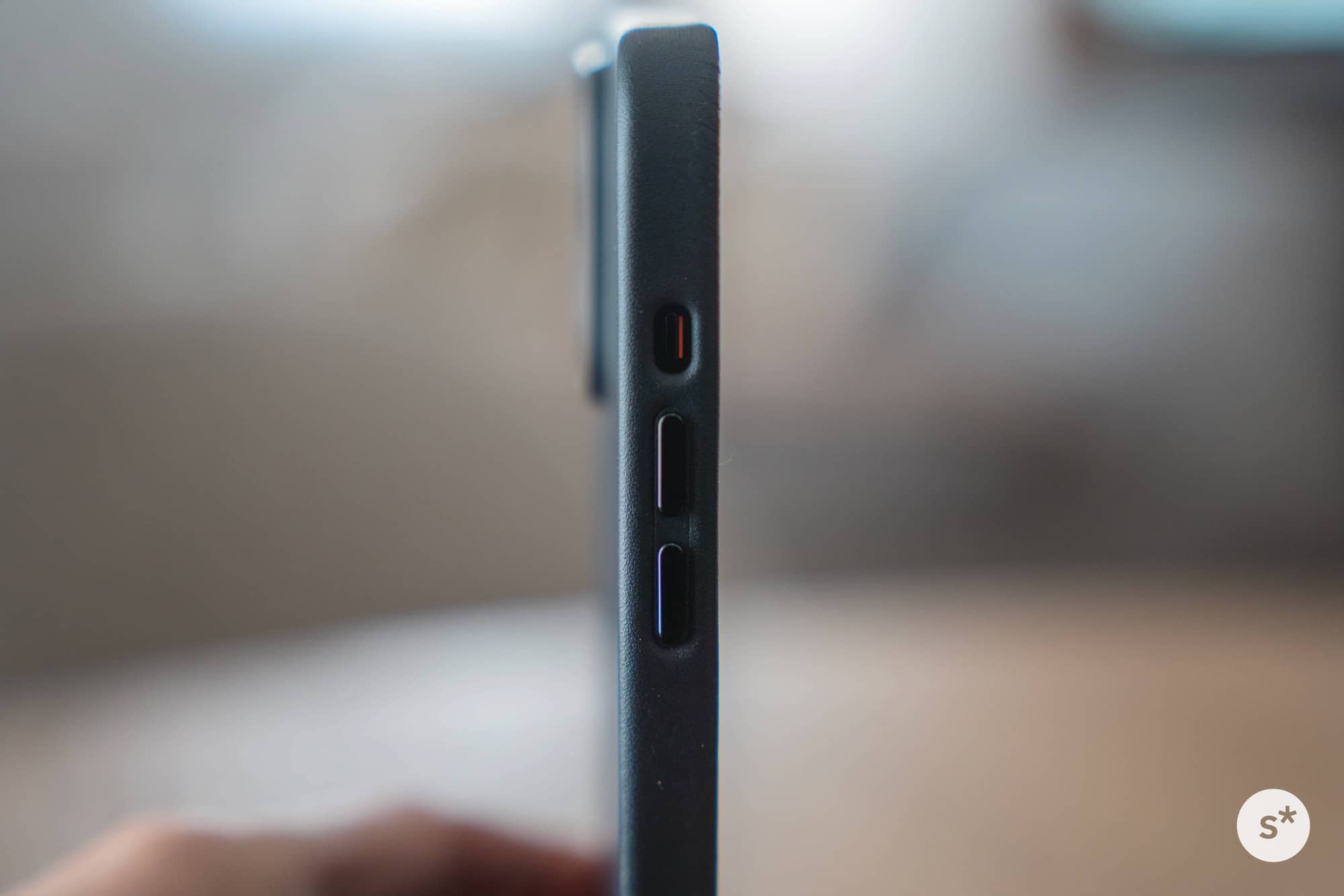 外側は繊細で高品質なスムーズレザーが使われています。これこそがこのケースの醍醐味です。