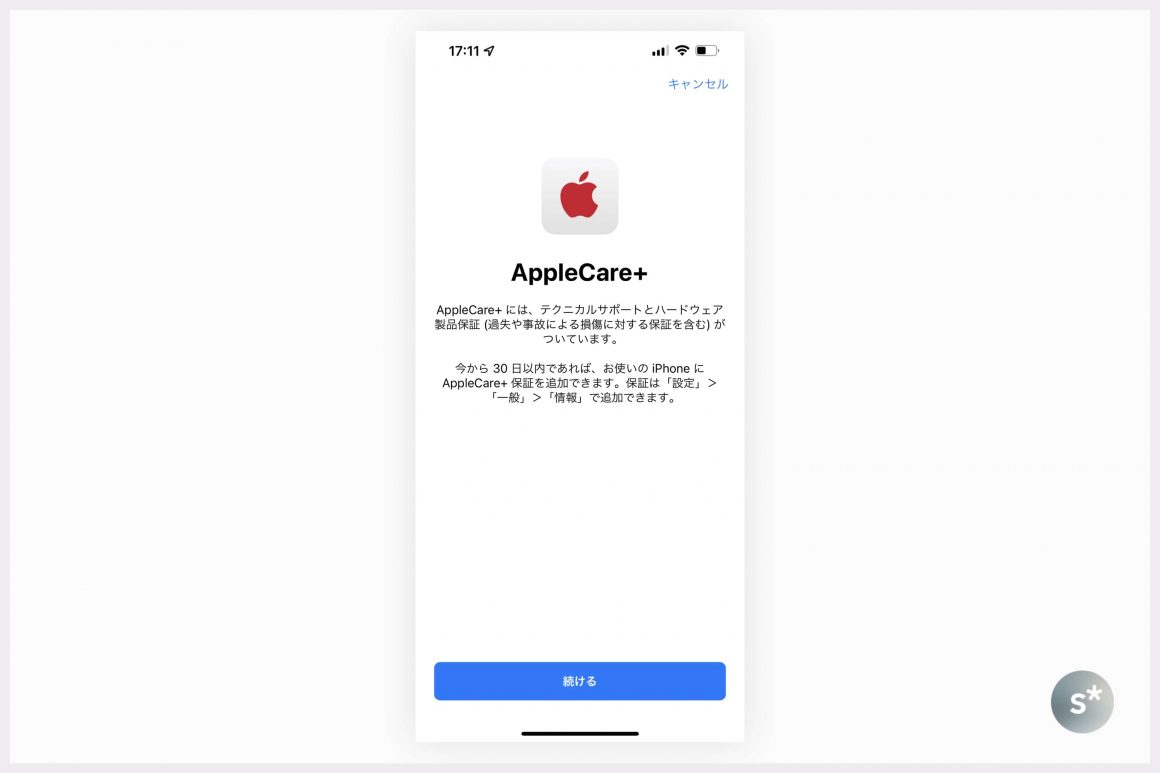 設定 → 一般 → 情報と入っていき、以下のようなAppleCare+の加入情報が表示されれば、無事に加入できています。