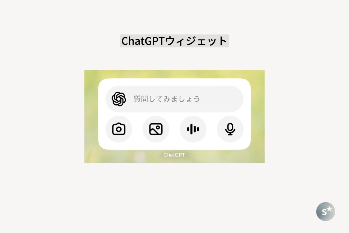 ホーム画面のいちばん上に置いているのはChatGPTのウィジェットです。ワンタップでChatGPTの新規チャットを始めることができたり、写真や音声対話系の機能にもダイレクトにアクセスすることができます。