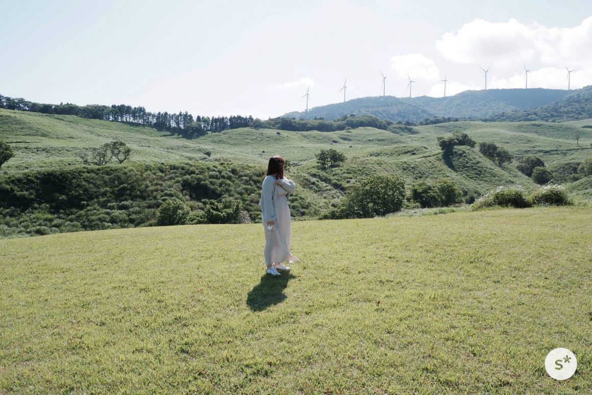 風車の並ぶ丘が見える草原があると聞いて、行かないという選択肢はありませんでした。前回の記事でお届けした城ヶ崎海岸から車で40分程度。伊豆半島の東側を散策する際に同時に行くことができると思います。