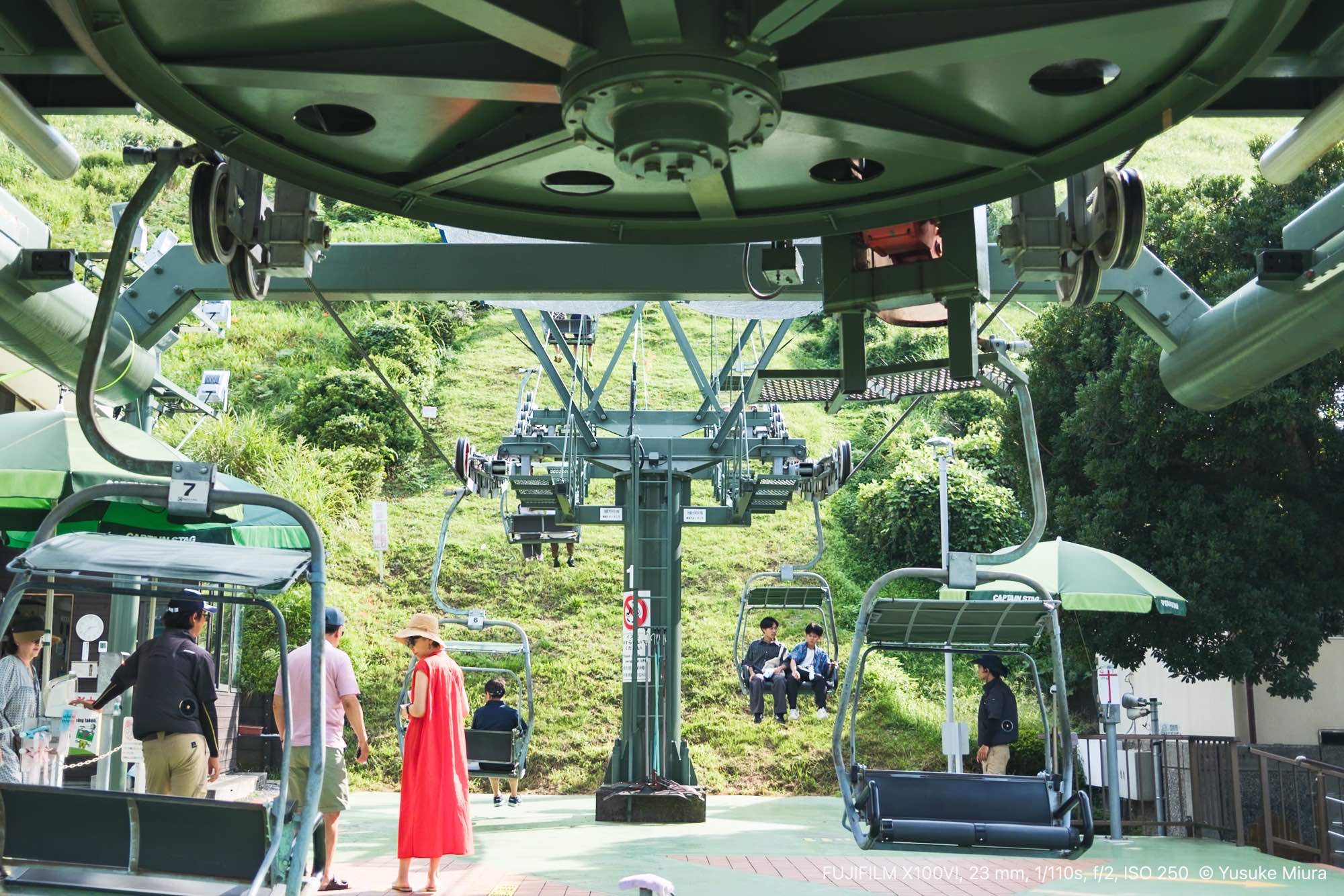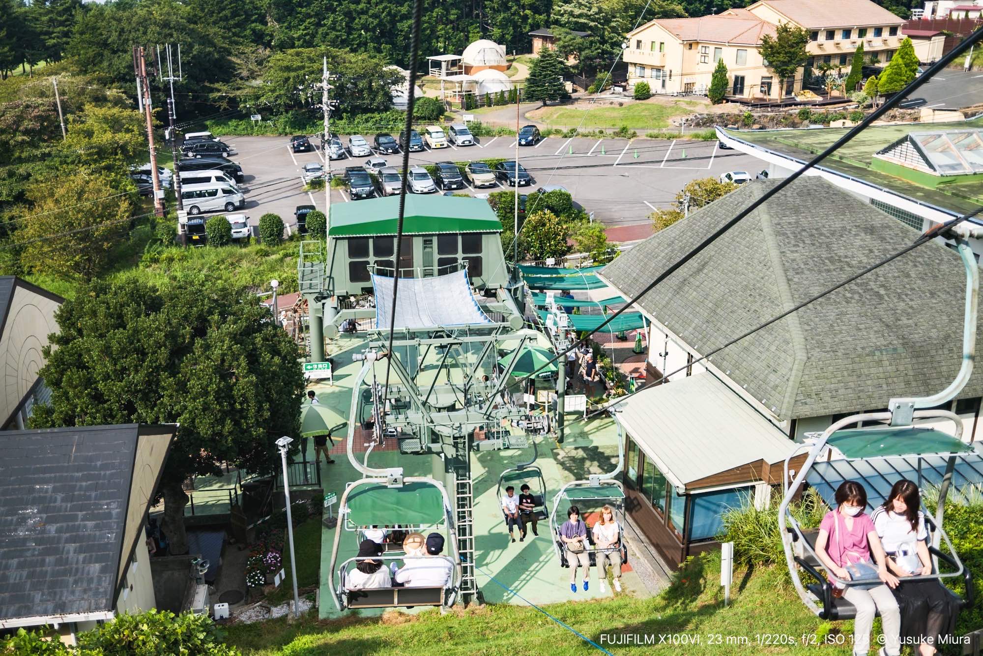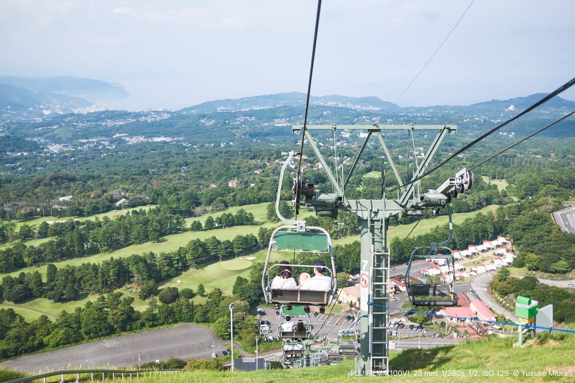 もちろん山頂からの景色もいいけれども、リフトで下りるときのダイナミックな景色も好きです。大室山の急斜面の上から眺める伊豆半島の自然も、また格別。