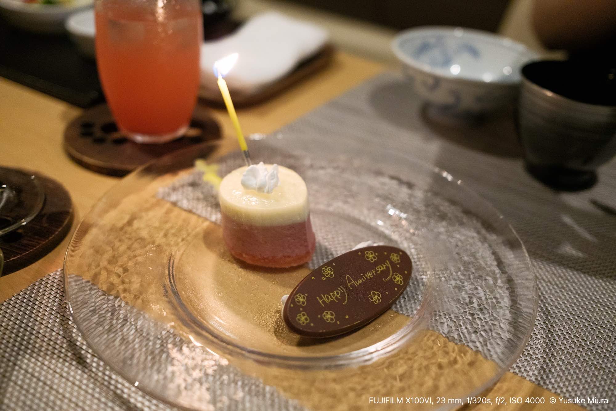 そして、今回は(3か月遅れの)結婚記念日旅行として行ったので、アニバーサリープレートも出していただけました。きめ細かい配慮が嬉しかったです。