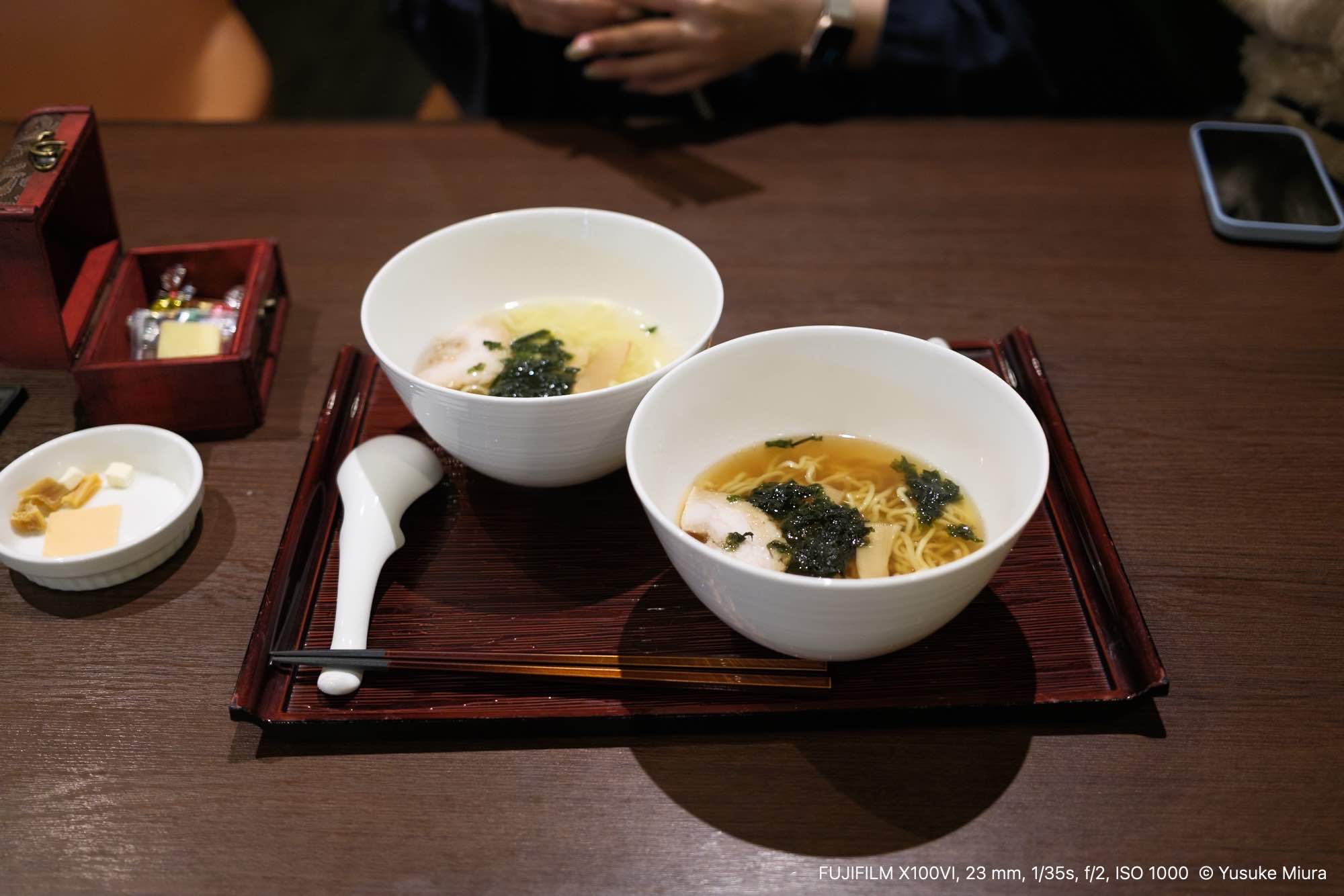 この日は醤油ラーメンと塩ラーメンから選べたので、僕は醤油にしました。小さいサイズのラーメンなのですが、1杯食べ終わった後に「もう1杯いかがですか?」と聞かれたら、そりゃあ食べちゃうよね。2杯目は塩で。