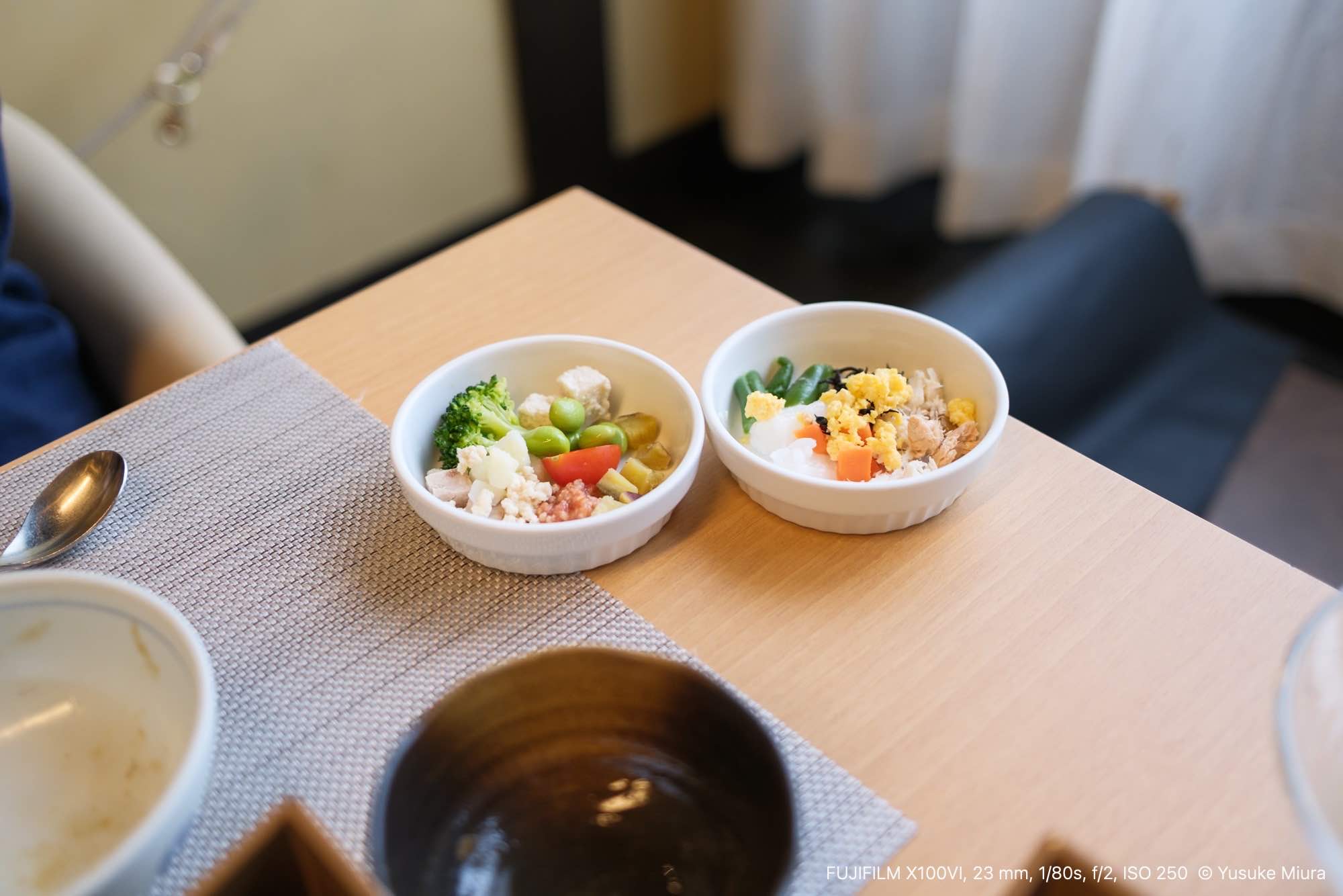 第1回ではこの宿への移動の様子を写真とともにお届けし、第2回ではチェックインした後のお部屋の様子をご紹介しました。この第3回では、食べたご飯や実際に泊まってみた感想など、宿泊レポートをお届けします。