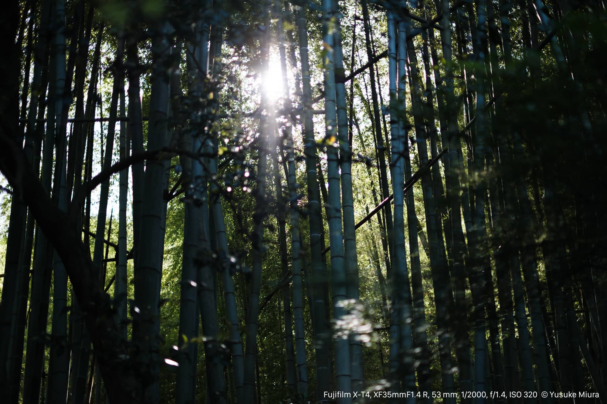 カメラはいつもの〈FUJIFILM X-T4 + FUJINON XF35mmF1.4 R〉の組み合わせ。換算53mmのレンズでは竹林を広く切り取るには不向きな気がするけれど、果たしてどうでしょうか。