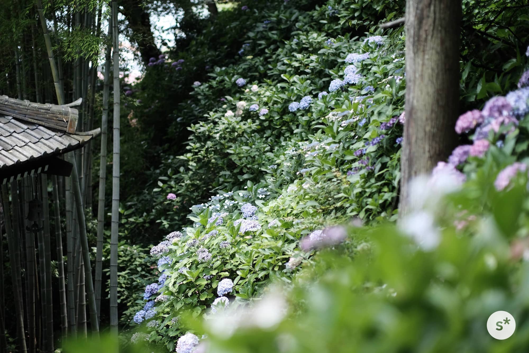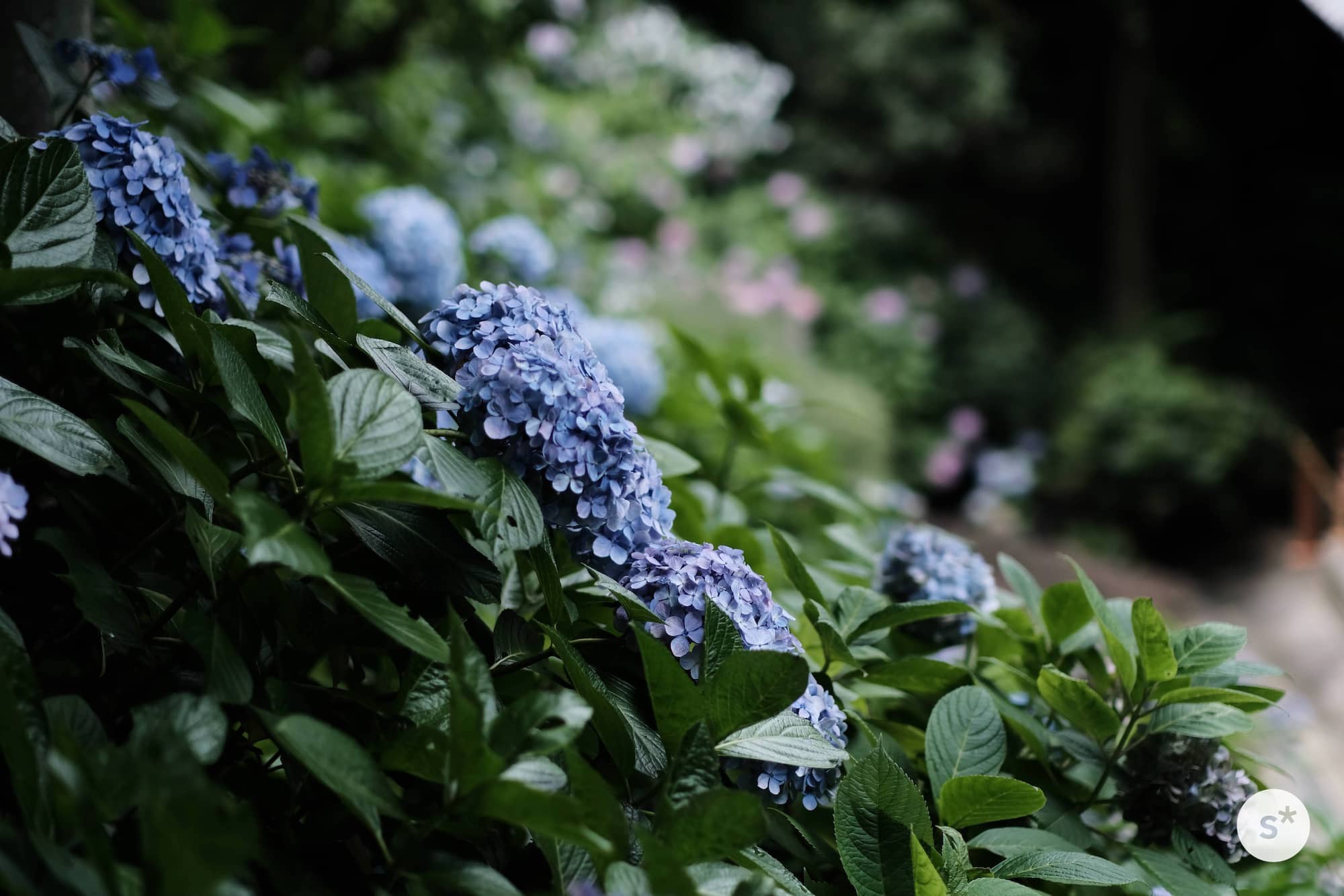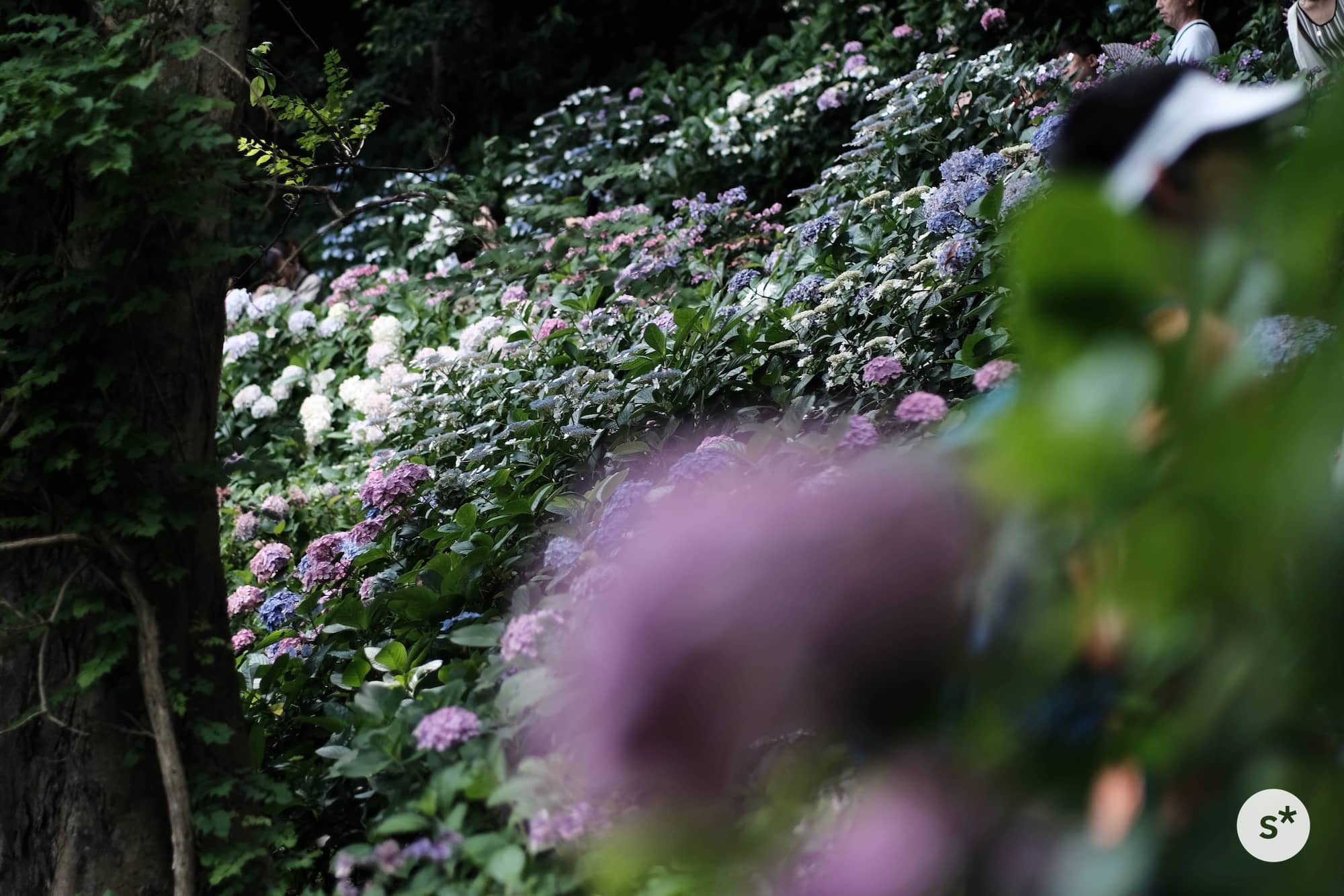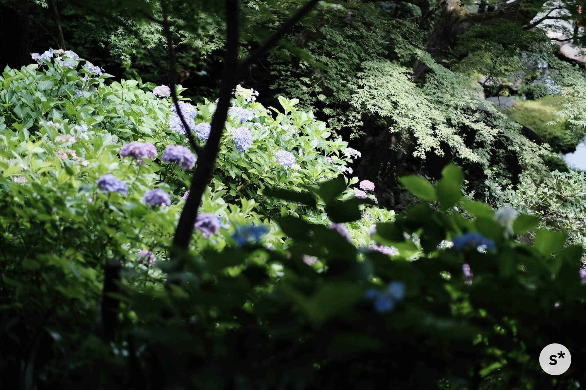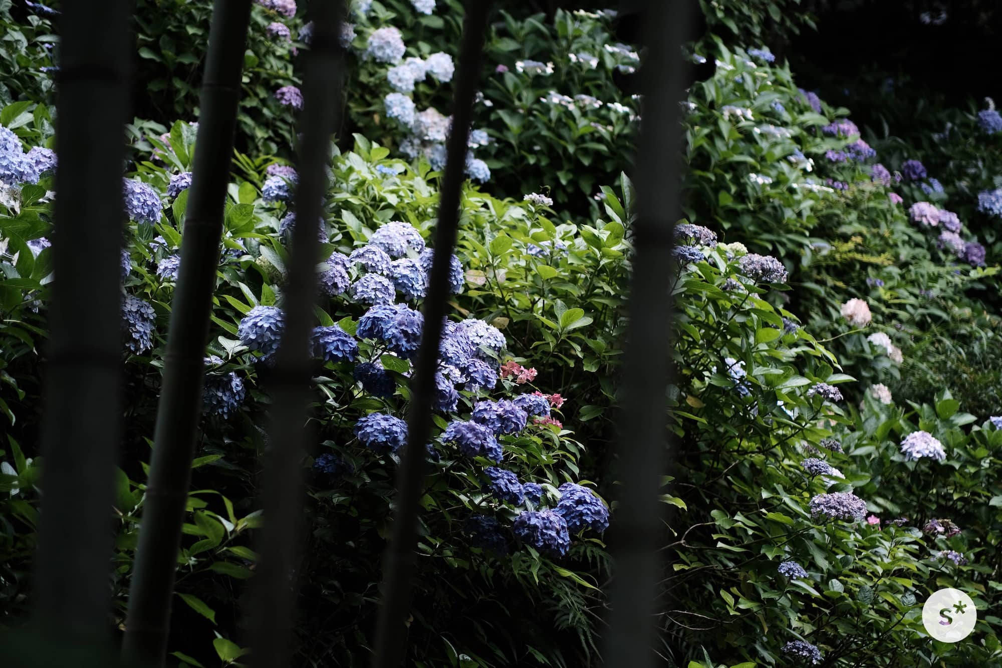 とはいえ、お寺の入口近くのエリアにもきれいに紫陽花が咲いているので、まずはこのあたりでデモンストレーションといきましょう。