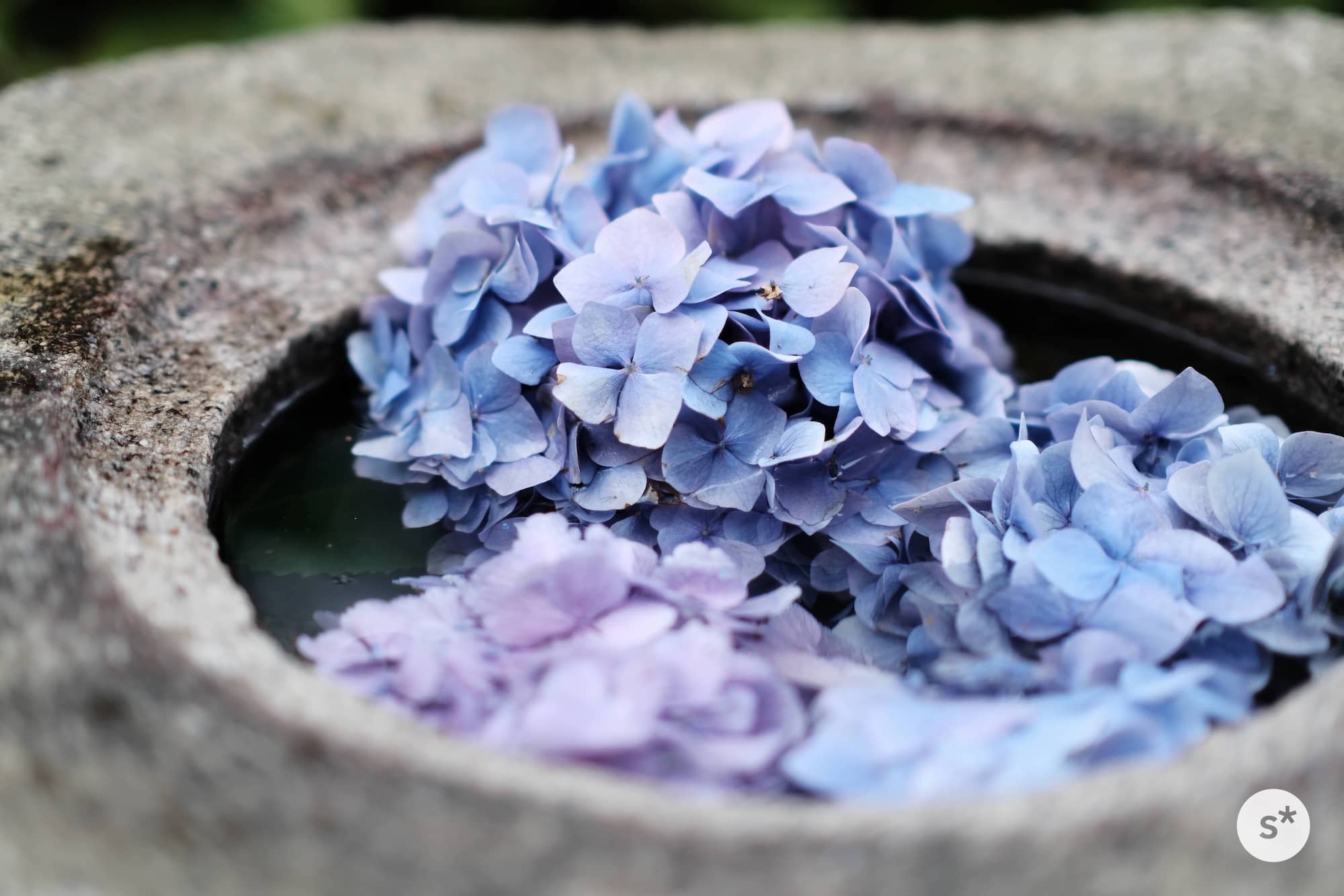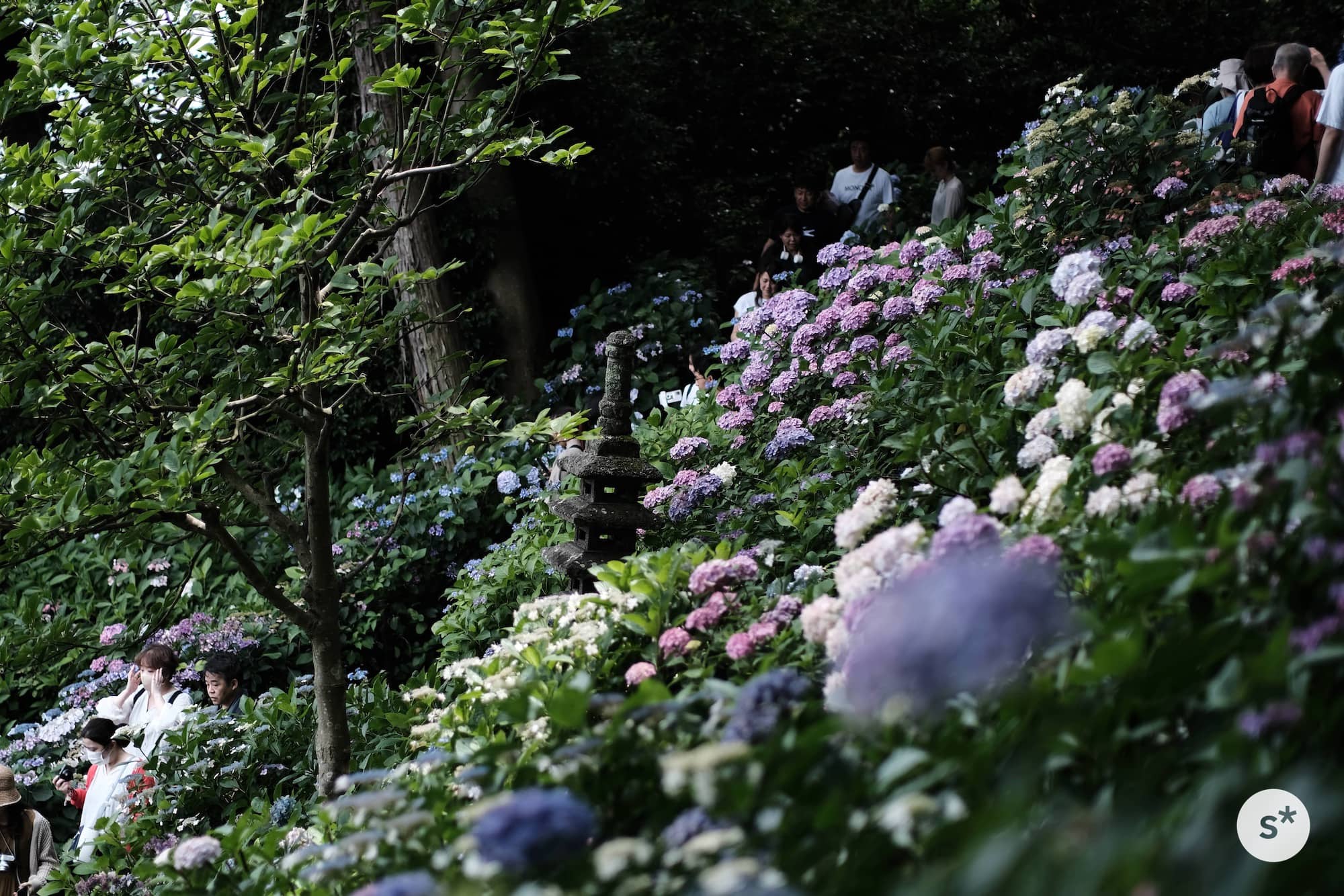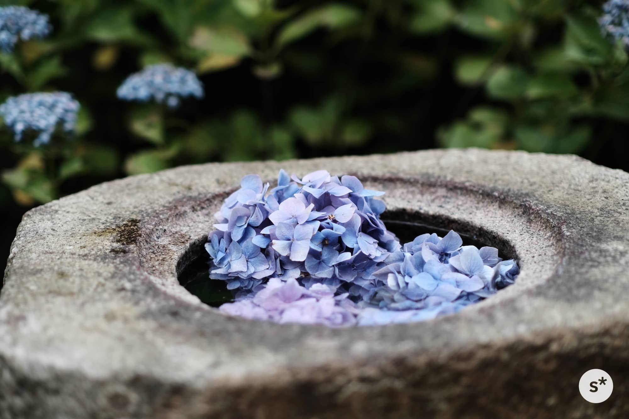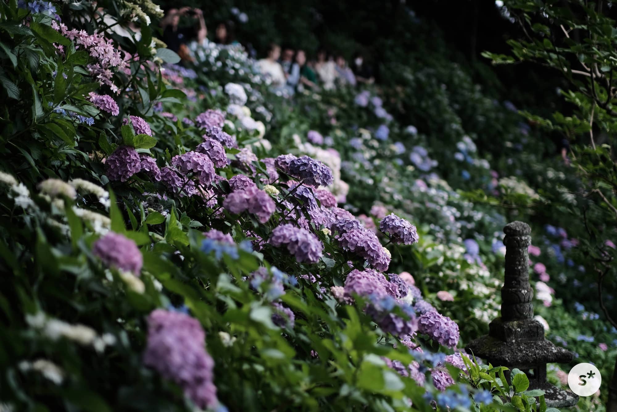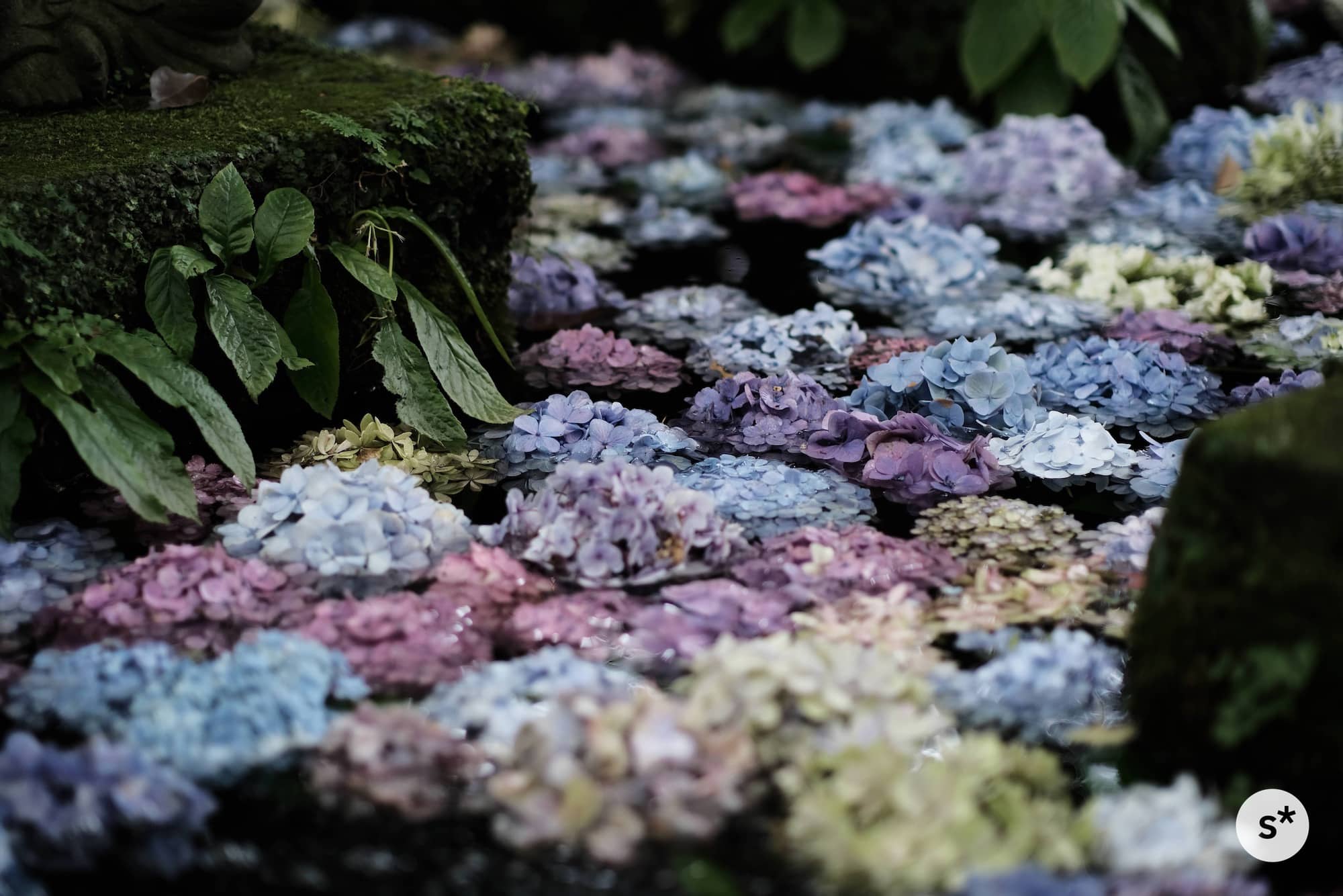 とはいえ、お寺の入口近くのエリアにもきれいに紫陽花が咲いているので、まずはこのあたりでデモンストレーションといきましょう。