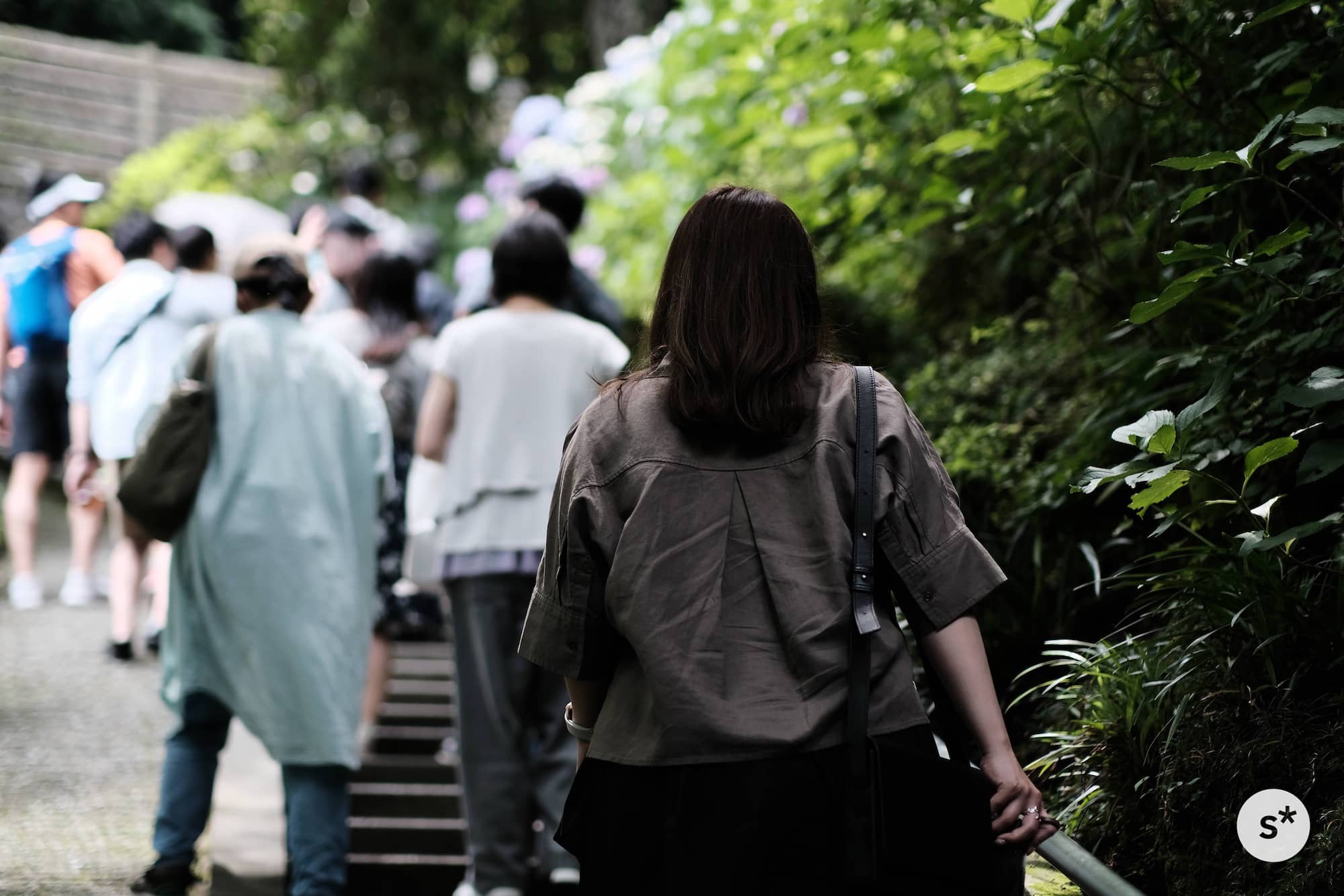 結局、「あじさい路」に入場するまで30分くらい待ちました。とはいえ、僕らが到着したときに待ち時間が50→30分になり、帰るときにはまた50分に戻っていました。タイミングには自信があるんです。