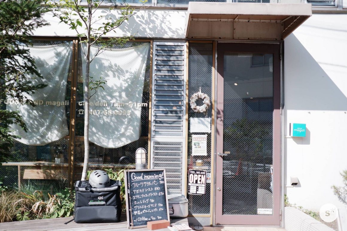 今日行ってみるのは、「FOOD STAND magali」というお店です。路地を少し入ったところにありますが、路地の入口に看板が出ていました。