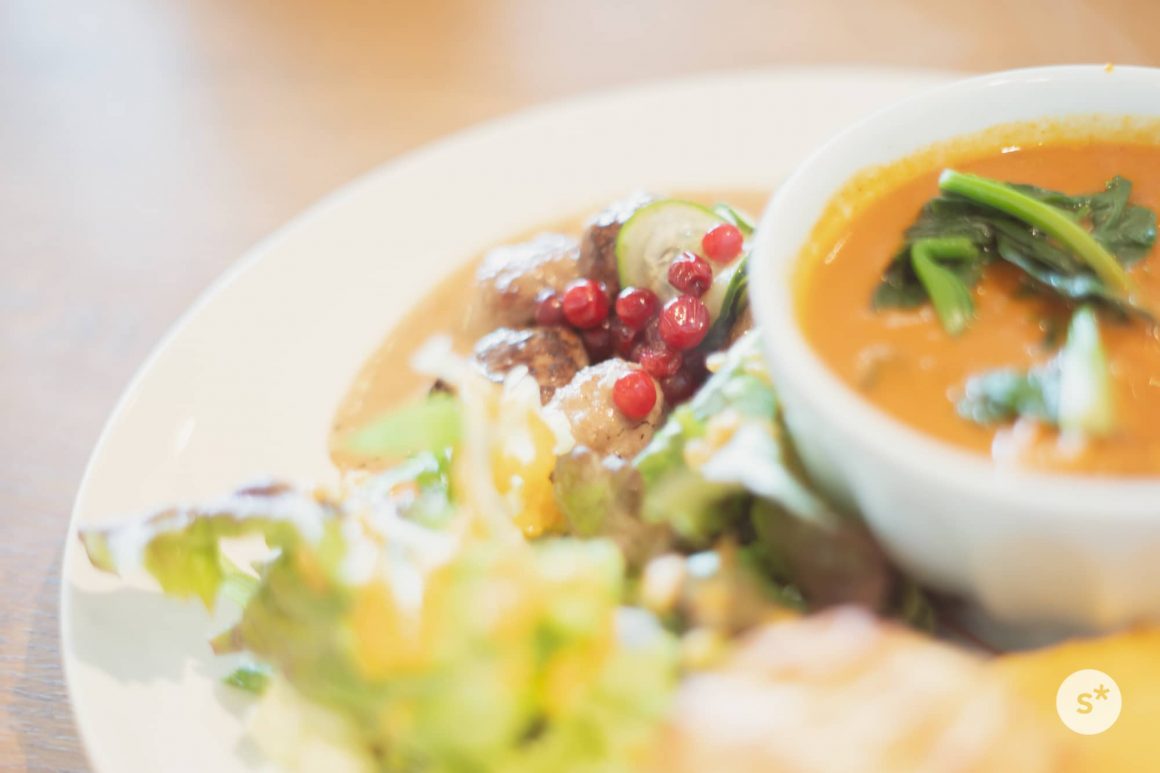 見た目のとおり、大変美味でした。カレースープの中には、箸で持つだけで崩壊してしまうほどに煮込まれた手羽元が1本入っており、おいしかったなあ。ミートボールも和牛で素晴らしいし、クッキーも最高。また来ます。