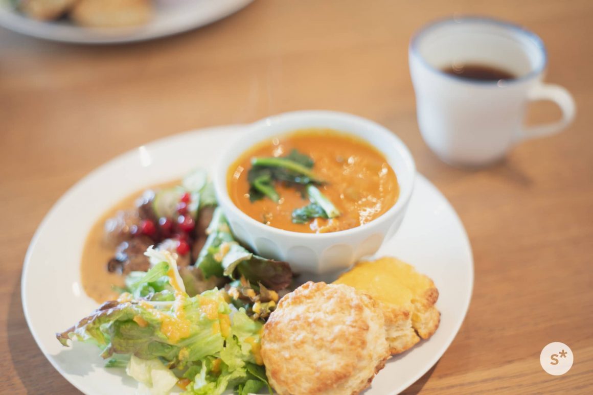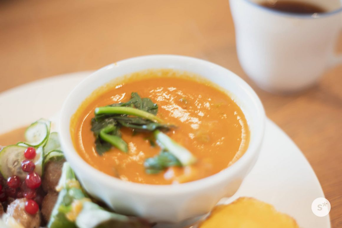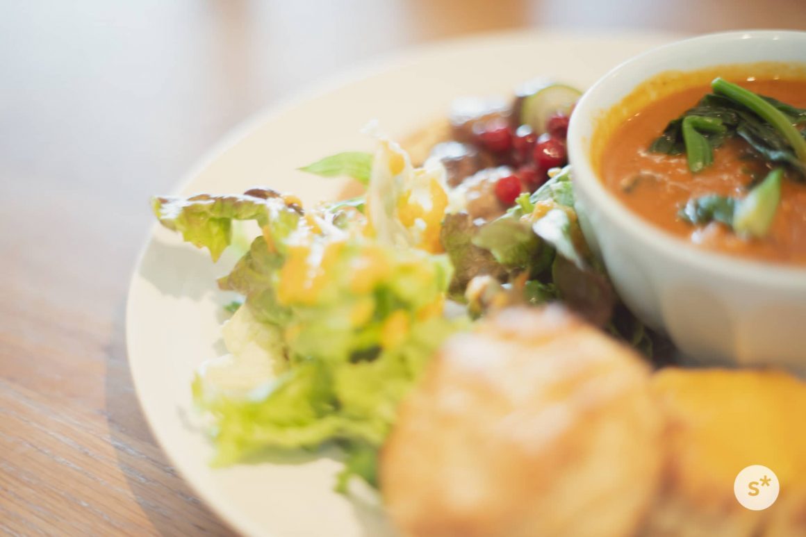 メインの料理を1つ決めて、それに本日のスープ、クッキー、サラダ、ドリンクが付いてきます。メインはきのこのオムレツ、ベーコンオムレツ、スウェーデンミートボールなどがありました。