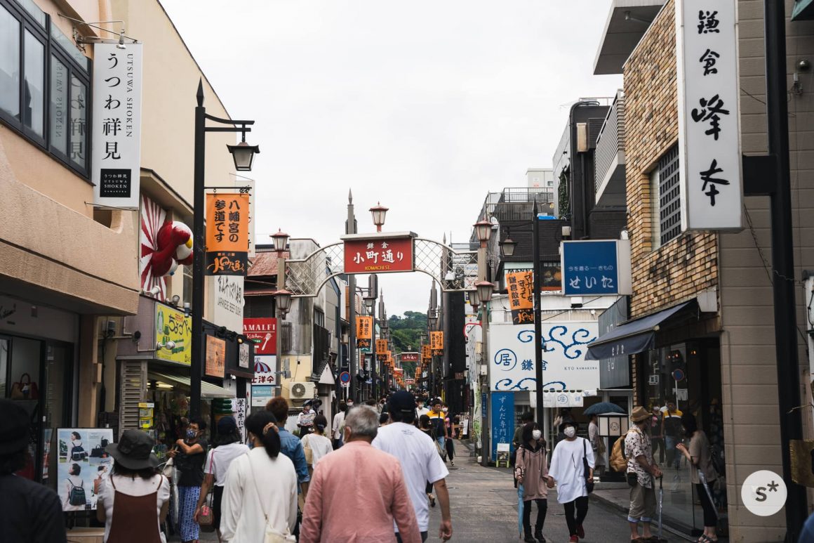 鎌倉駅近くの駐車場に車を止め、歩くこと3分ほど。小町通りまでやってきました。この通りを突っ切ると、鶴岡八幡宮です。