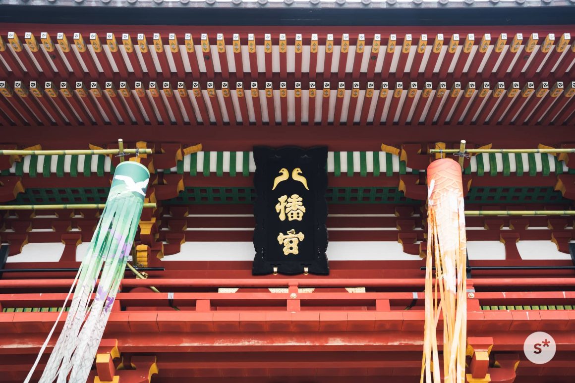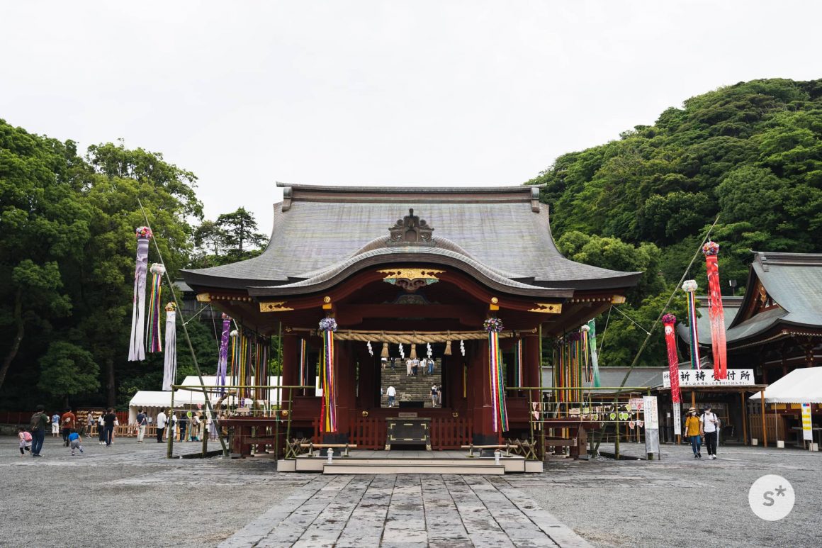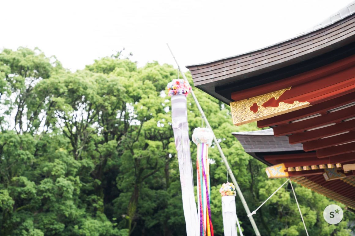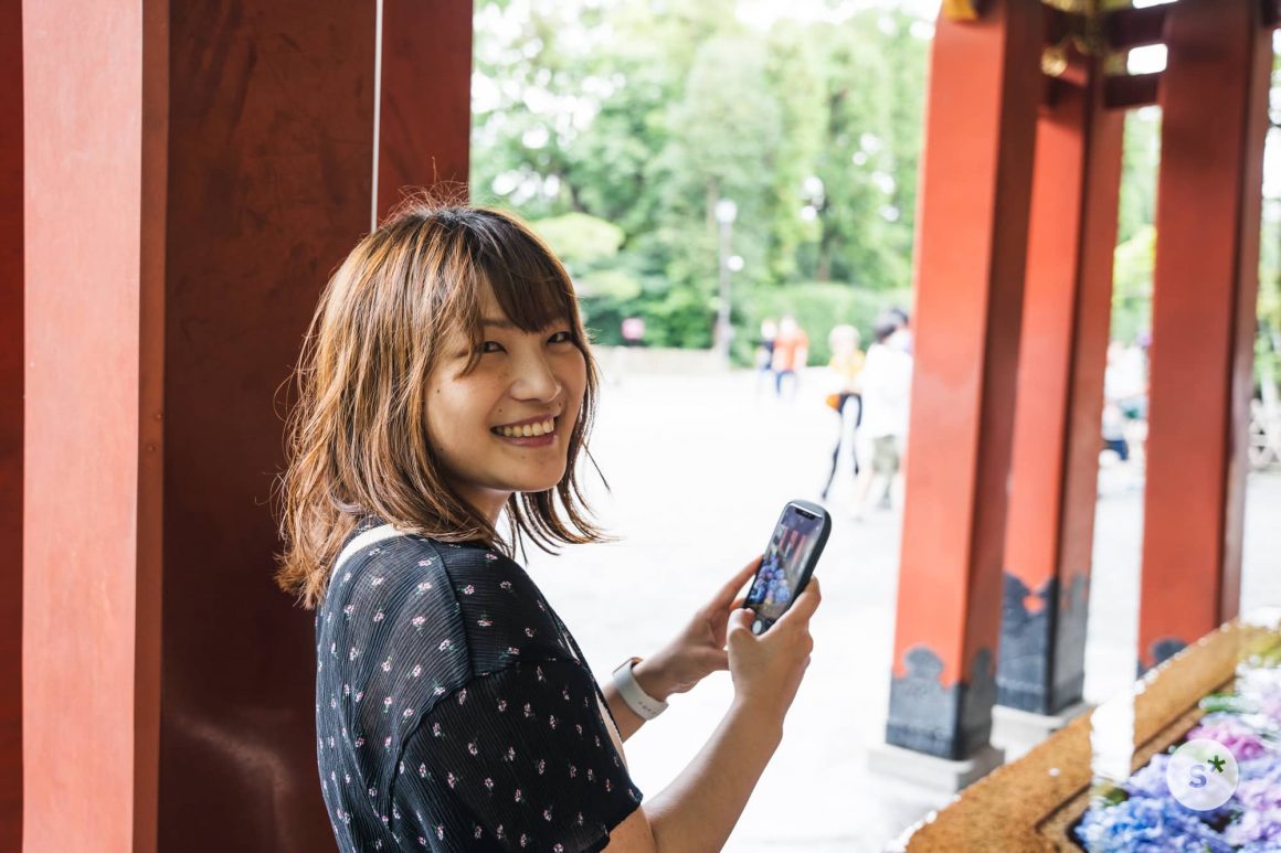 手水舎では感染拡大防止の観点からか、手を洗うことができませんでした。その代わり紫陽花がたくさん浮かべてあります。