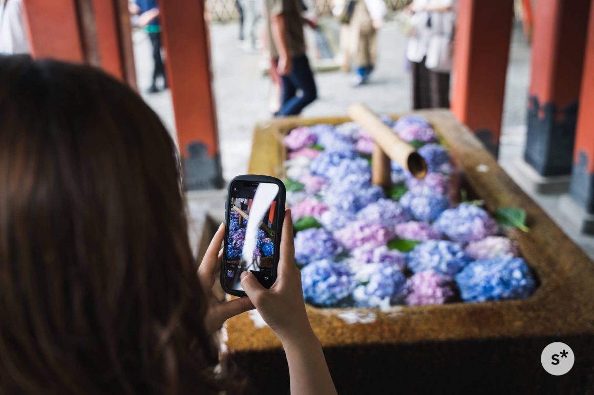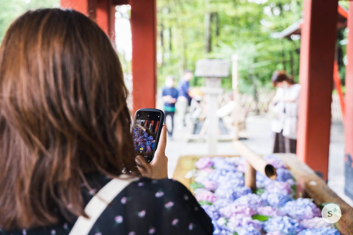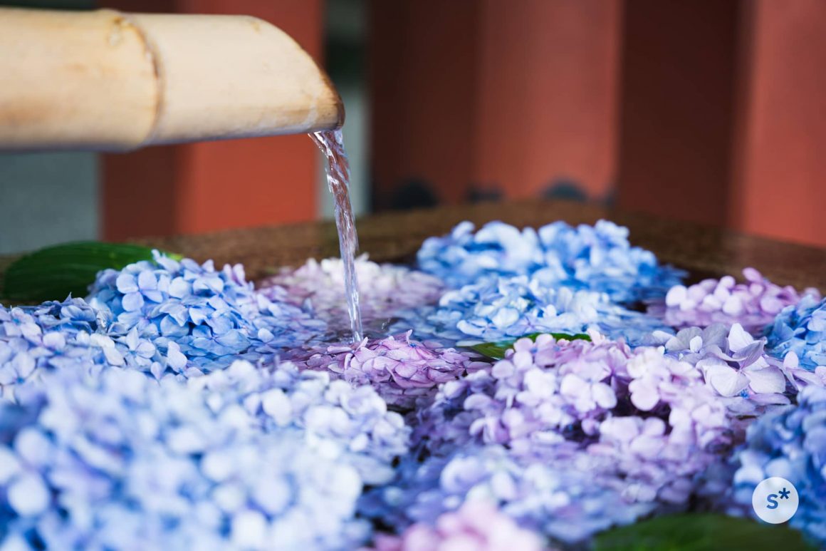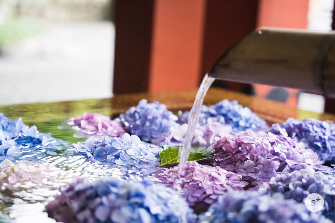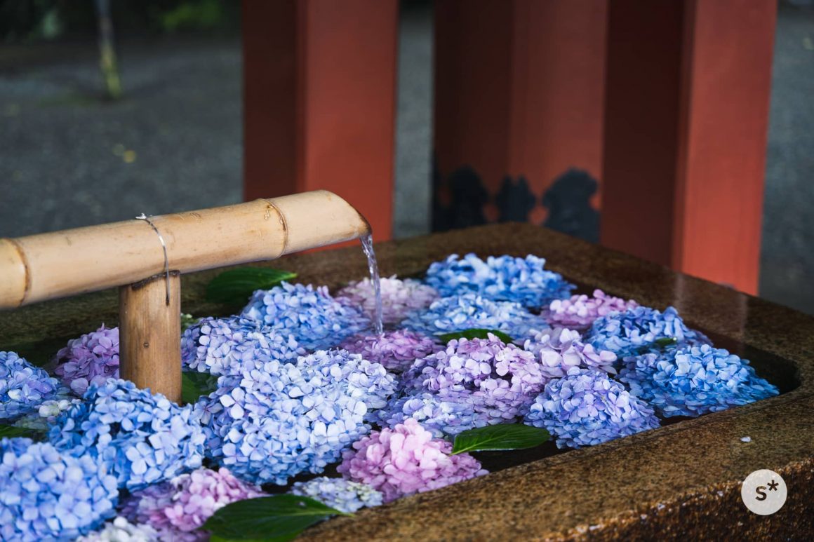 手水舎には紫陽花が
